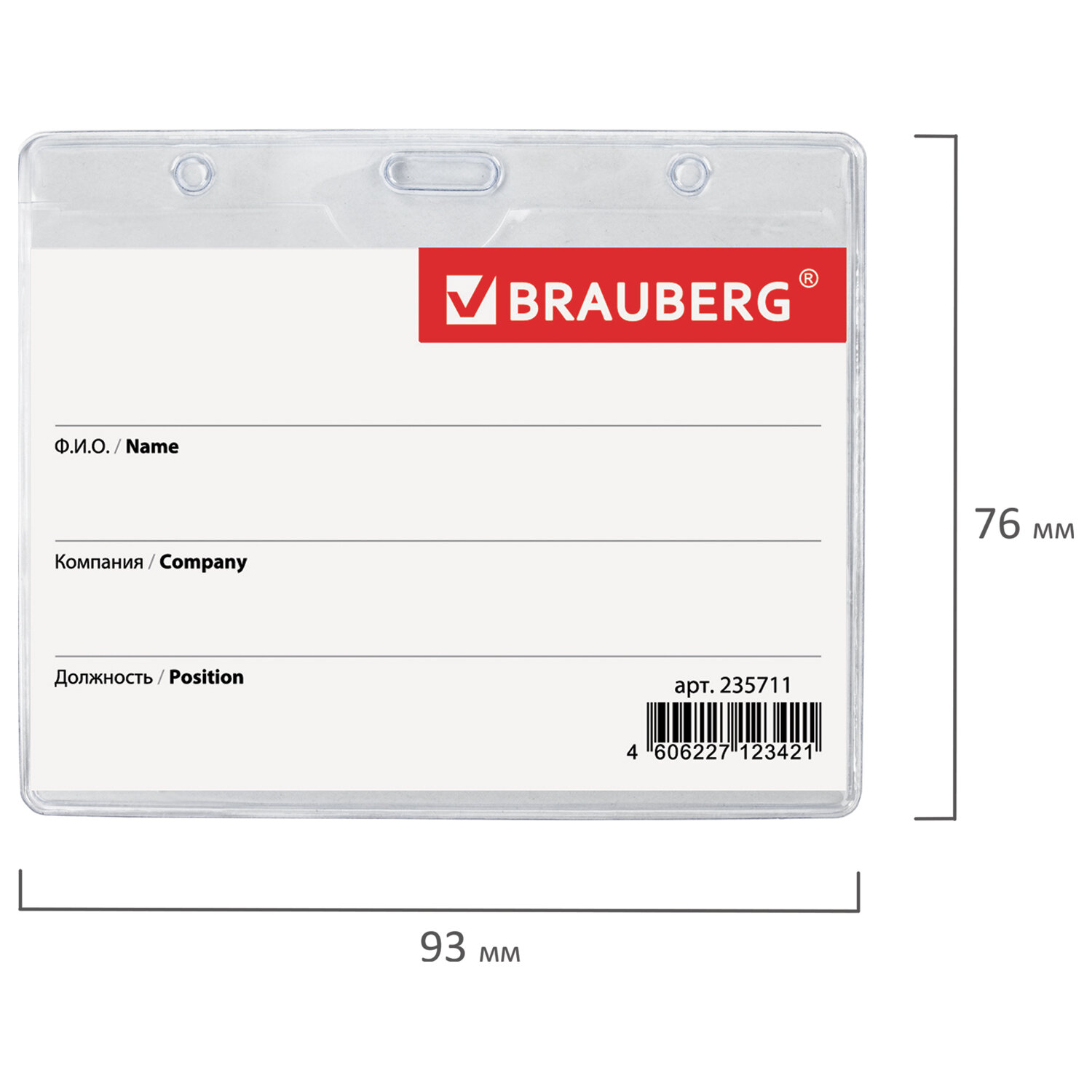 Тип бейджа: классический Тип крепления: булавка, клипса Положение: горизонтальное Длина вкладыша: 90 мм Ширина вкладыша: 60 мм Длина бейджа: 93 мм Ширина бейджа: 76 мм Цвет крепления: серебристый Материал корпуса: мягкий пластик Цвет корпуса: прозрачный Количество в комплекте: 1 шт.