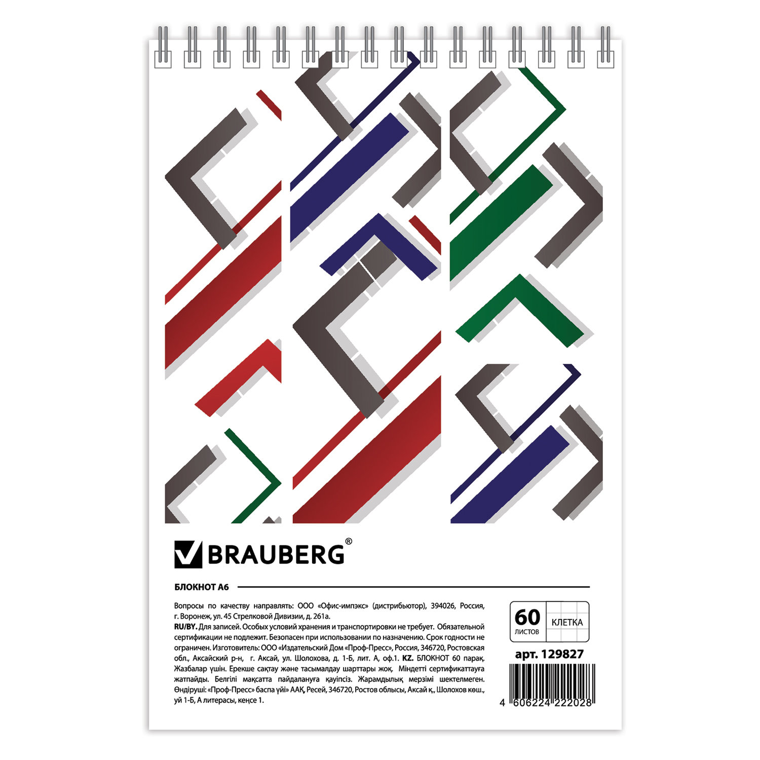 Блокнот формата А6 на евроспирали содержит 60 листов с линовкой в клетку, что позволяет зафиксировать большой объем нужной информации. Имеет верхнее расположение переплета. Обложка выполнена из мелованного картона плотностью 200 г/м2. Внутренний блок состоит из белой офсетной бумаги плотностью 60 г/м2.