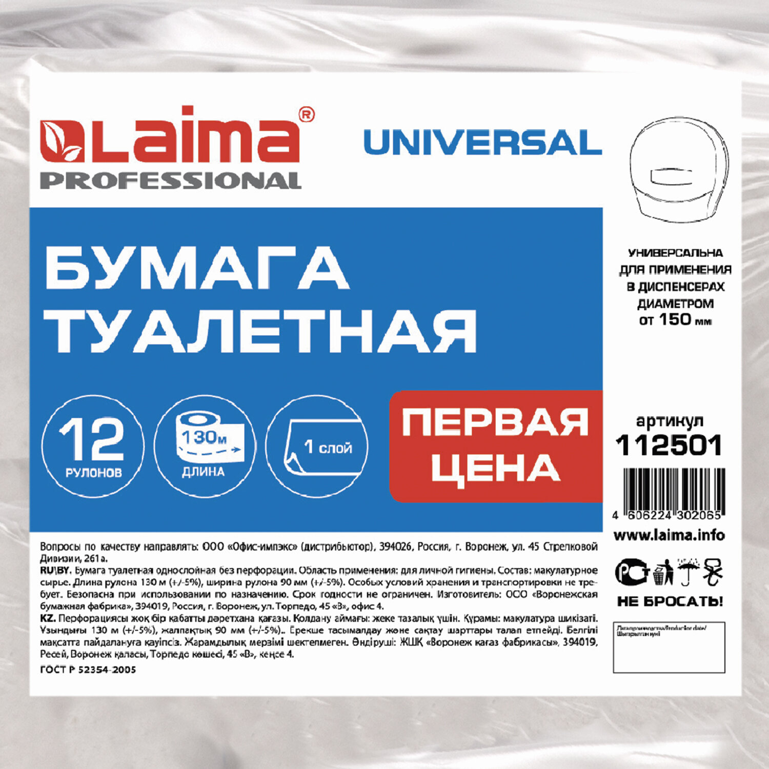 Подходит для диспенсерной системы Т2. Один слой. В комплекте 12 рулонов длиной 130 м. Такого количества хватит на долгое время использования. Идеально сочетается с диспенсерами других производителей. Тиснение придает дополнительную мягкость. Растворяется в воде, что препятствует засорам в канализации.