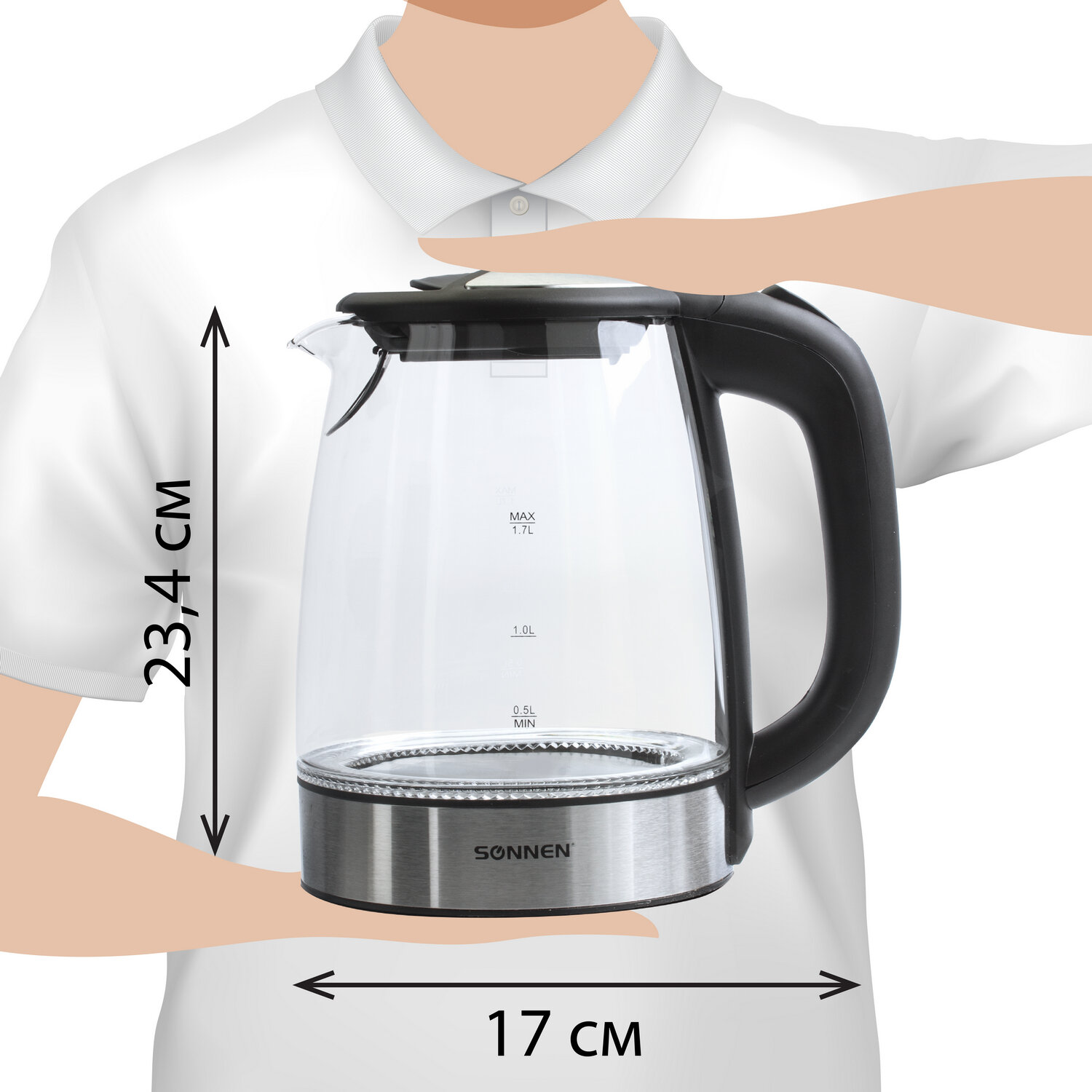 Объем: 1.7 л Мощность: 2200 Вт Материал корпуса: термостойкое стекло Вид нагревательного элемента: закрытый Автоотключение при закипании: да Отключение при отсутствии воды: да Индикатор включения: да Вращение на 360°: да Подсветка: да Фильтр от накипи: да Длина шнура: 0.75 м Цвет корпуса: черный Ширина: 187 мм Высота: 255 мм Глубина: 220 мм Вес: 1.36 кг