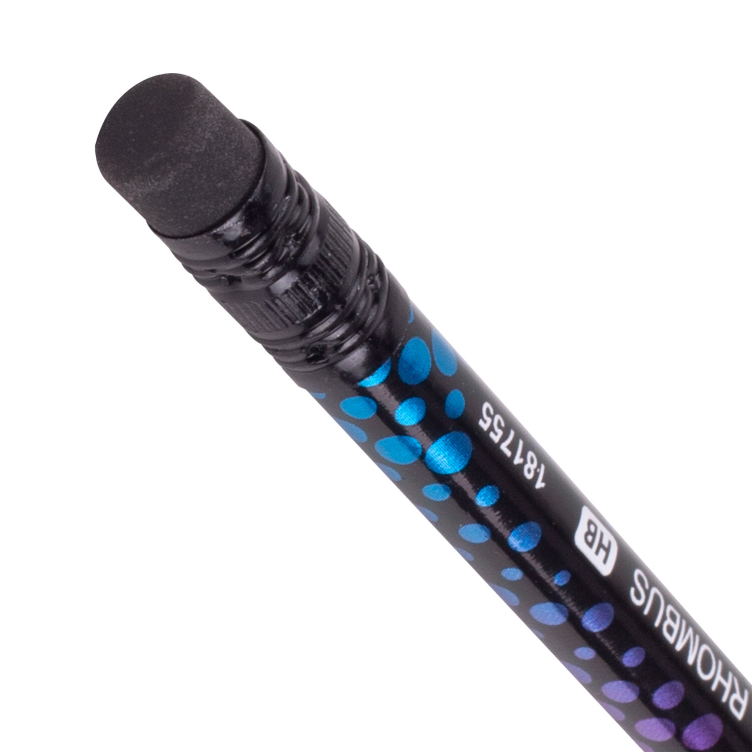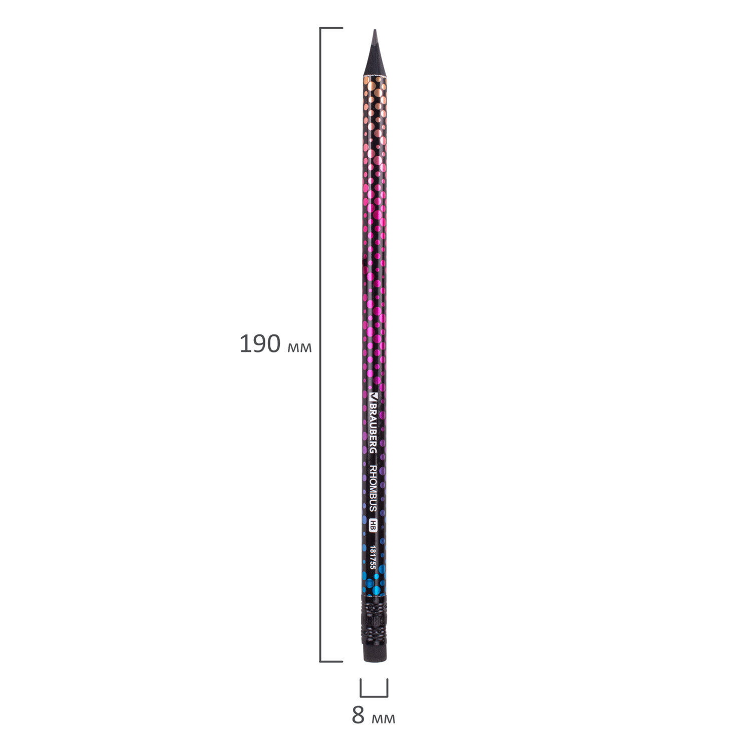 Каждый карандаш имеет индивидуальный штрих-код. Легко затачивается, максимально устойчив к повреждениям. Изготовлен из черного дерева высокого качества. Имеет круглое сечение и оснащен ластиком. Карандаш длиной 190 мм обладает средней степенью твердости – HB. Корпус покрыт цветной печатью ассорти в 3 дизайнах. Поставляется заточенным в пластиковой тубе по 72 штуки.