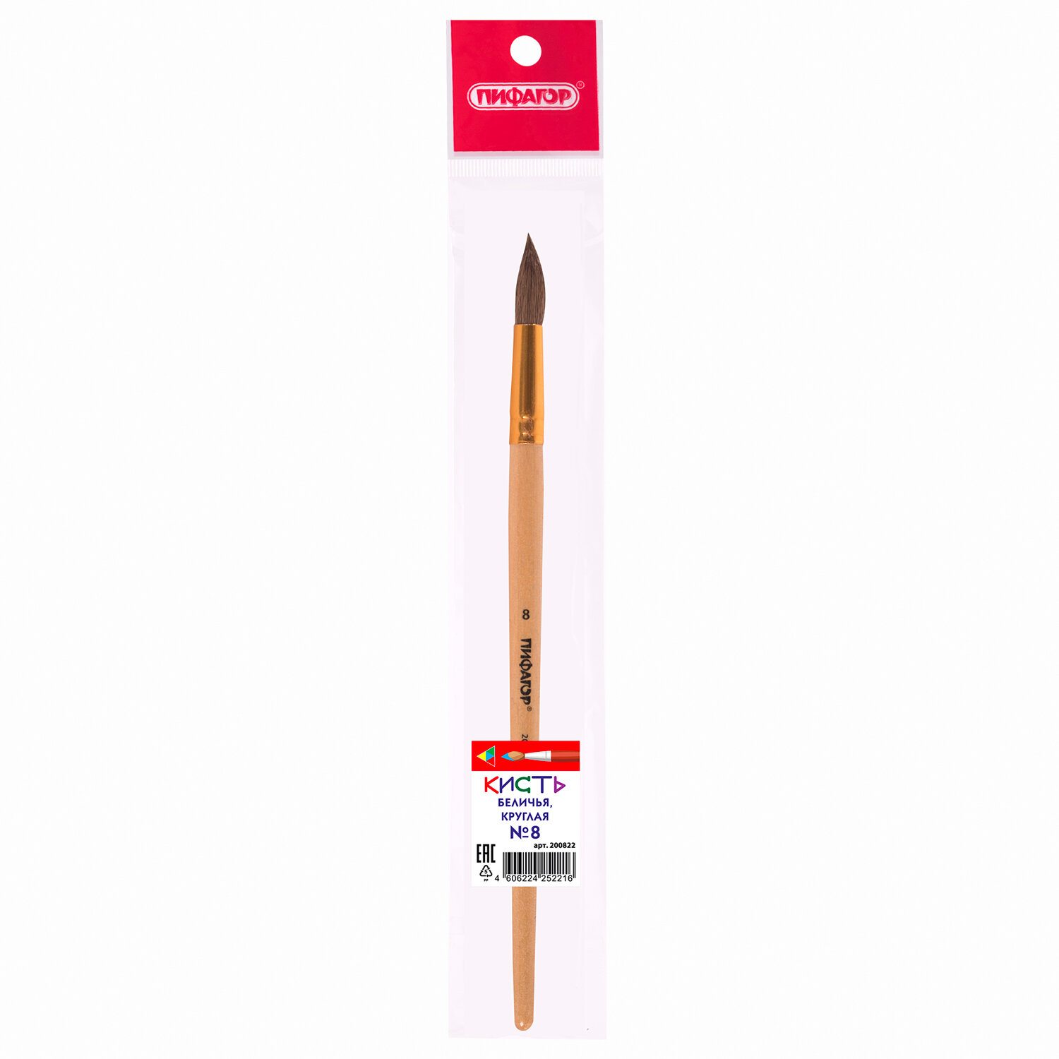 Кисть ПИФАГОР № 8 станет верным помощником начинающему художнику. Покупайте товары для учебы и детского творчества в нашем интернет-магазине!