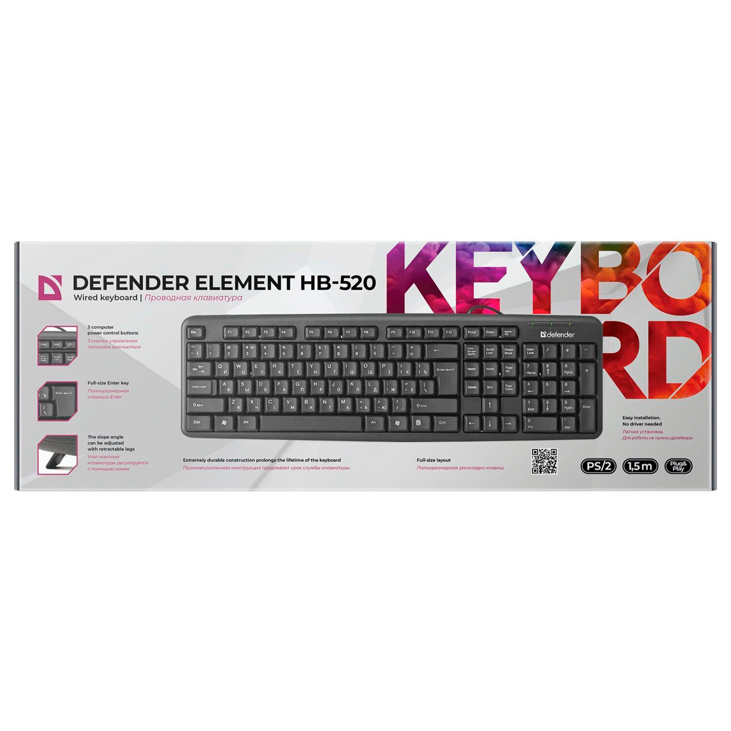 DEFENDER Element HB-520 предлагает классическую QWERTY-раскладку с большими клавишами «Enter» и «Shift», длинным «Пробелом», полноценными стрелками для перемещения курсора по текстовым документам. Три дополнительные кнопки в верхней части корпуса помогут быстро включить или выключить компьютер, отправить систему в состояние сна и выйти из него.