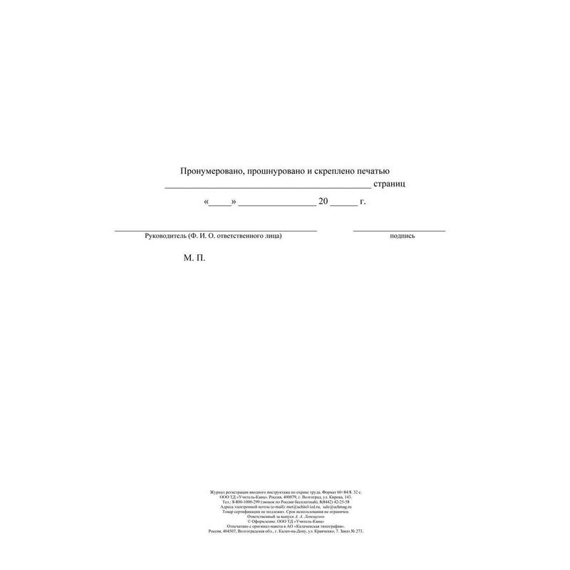 8. Подпись работника, проводившего вводный инструктаж по охране труда.