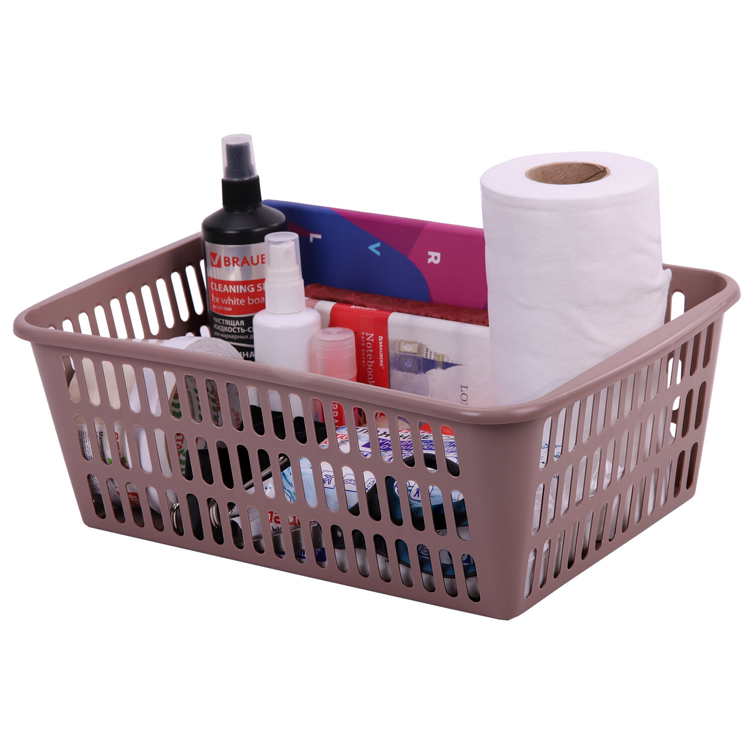 Тип товара: корзина для хранения Объем: 11.25 л Количество выдвижных секций: 0 шт. Количество ручек: 0 Цвет корпуса: ассорти Цвет крышки: нет Материал: пластик Высота: 12.5 см Ширина: 36 см Глубина: 25 см