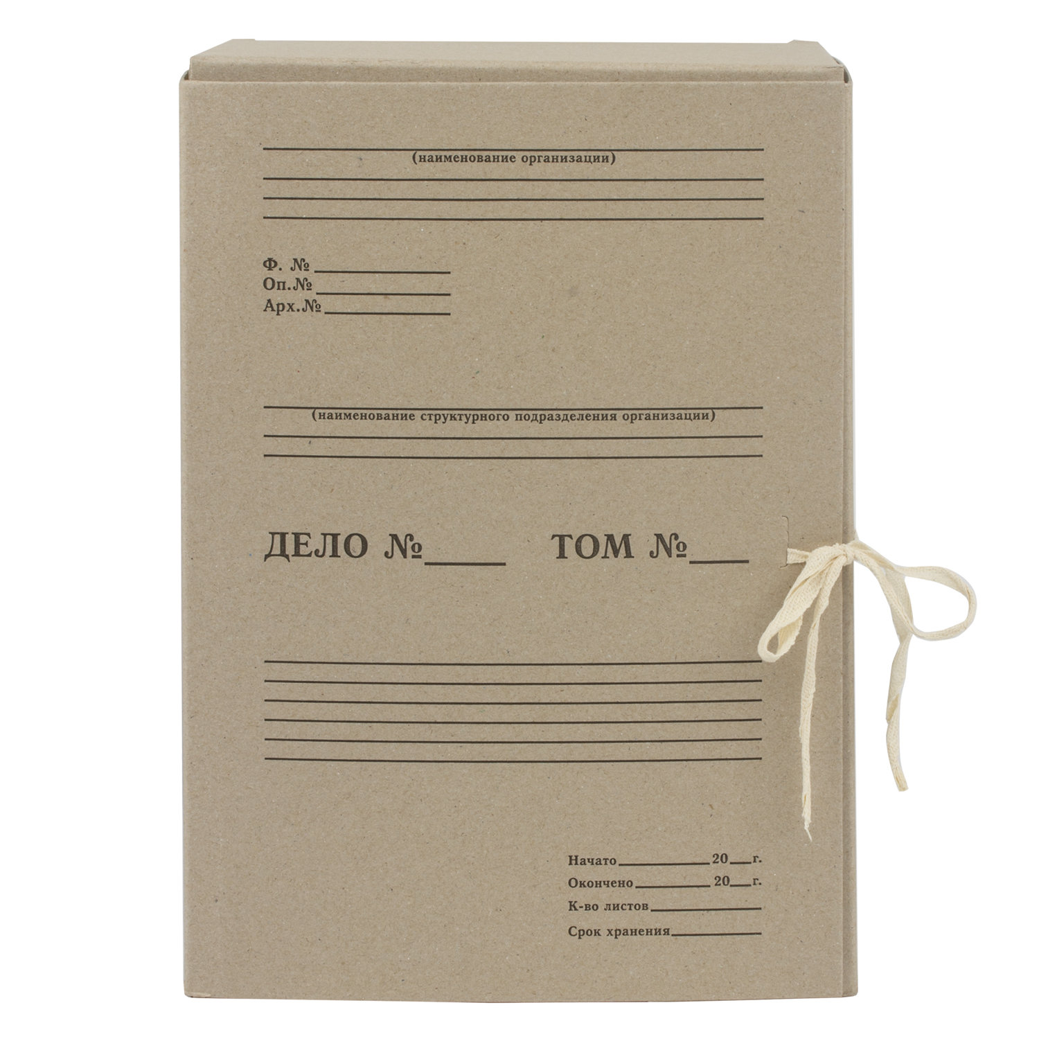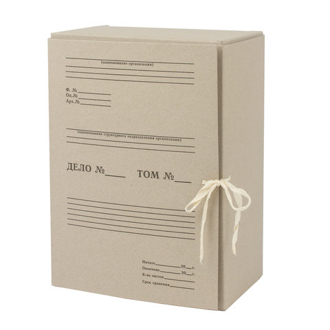 Назначение: для архивирования документов Длина: 240 мм Ширина: 150 мм Высота: 330 мм Вмещает: до 1400 листов Откидная крышка: да Застежка: 2 х/б завязки Материал: переплетный картон Толщина картона: 1.25 мм Поставляется в разобранном виде: да Выдерживает: 7 кг Цвет: бежевый