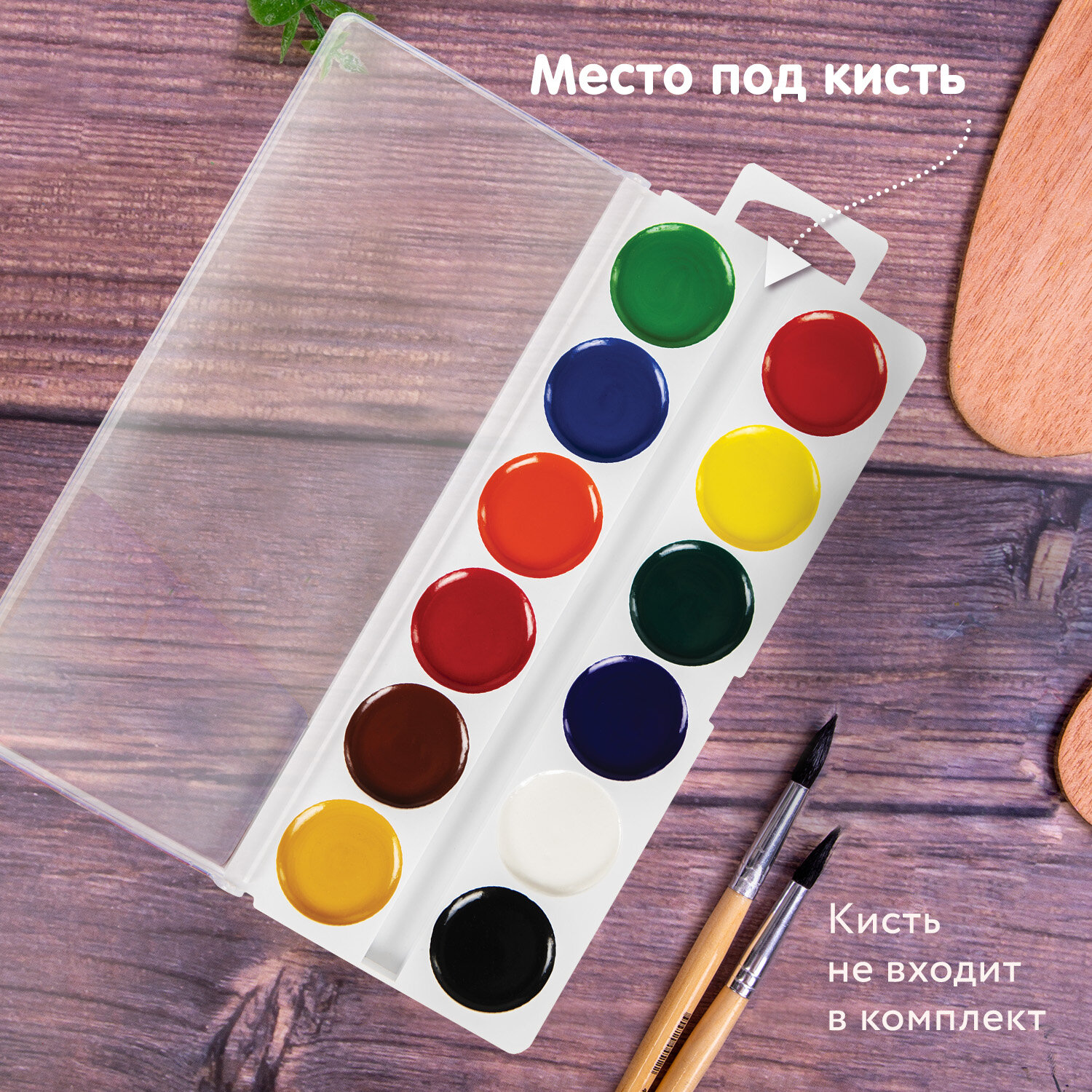 12 ярких насыщенных цветов отлично смешиваются между собой и позволяют создать множество оттенков, обеспечивают однородное окрашивание. Краски быстро высыхают и не портятся со временем. Безопасны для детей, нетоксичны. Идеально подойдут для детского творчества и художественного изобразительного искусства. Краски выпускаются в пластиковом пенале с европодвесм, прозрачной крышкой, круглой формой кювет и отделением для кисточки. Упаковка обладает компактными размерами и легким весом.