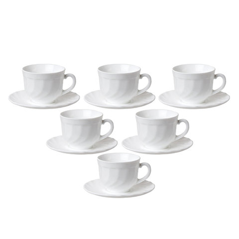 Тип товара: набор чайный Серия: Trianon Количество персон: 6 Количество предметов: 12 шт. Состав набора: 6 чашек, 6 блюдец Объем чашки: 220 мл Материал: стекло Цвет: белый