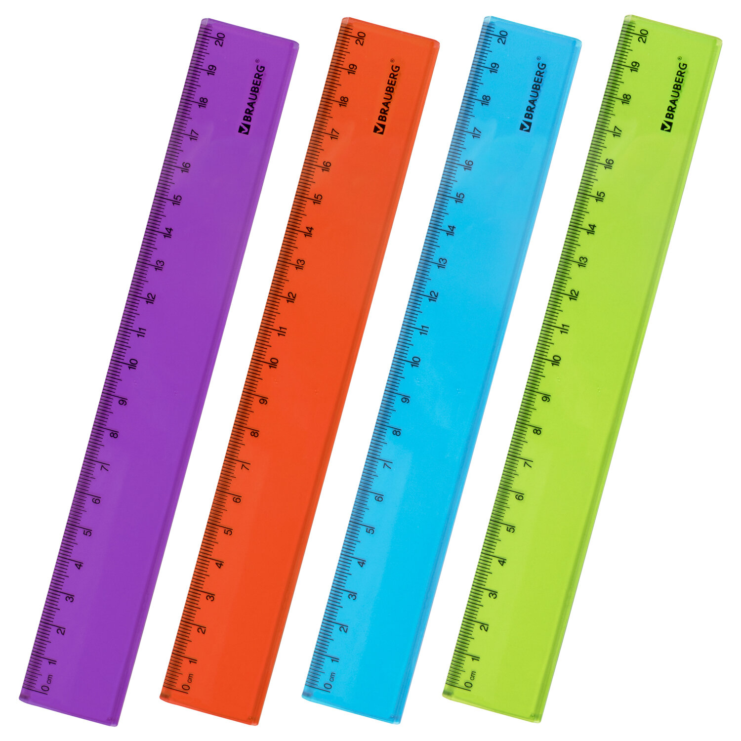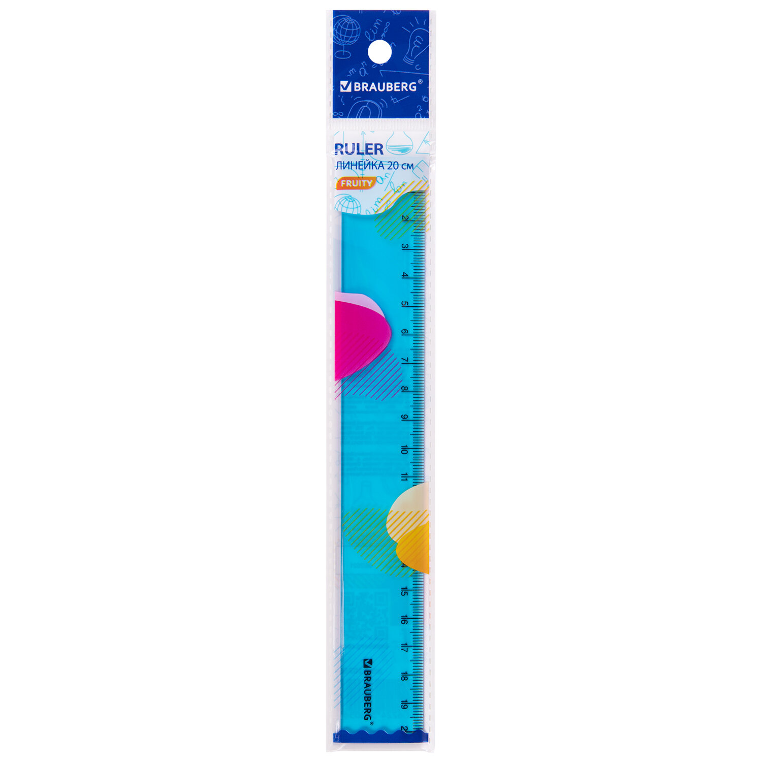 Линейка из прочного тонированного пластика ярких цветов. Имеет безопасные закруглённые углы. Линейка обладает четкой разметкой, что делает ее удобной в использовании. Длина шкалы составляет 20 см. Поставляется в нескольких вариантах цвета (без возможности выбора). Упакована в пластиковый пакет с подвесом.