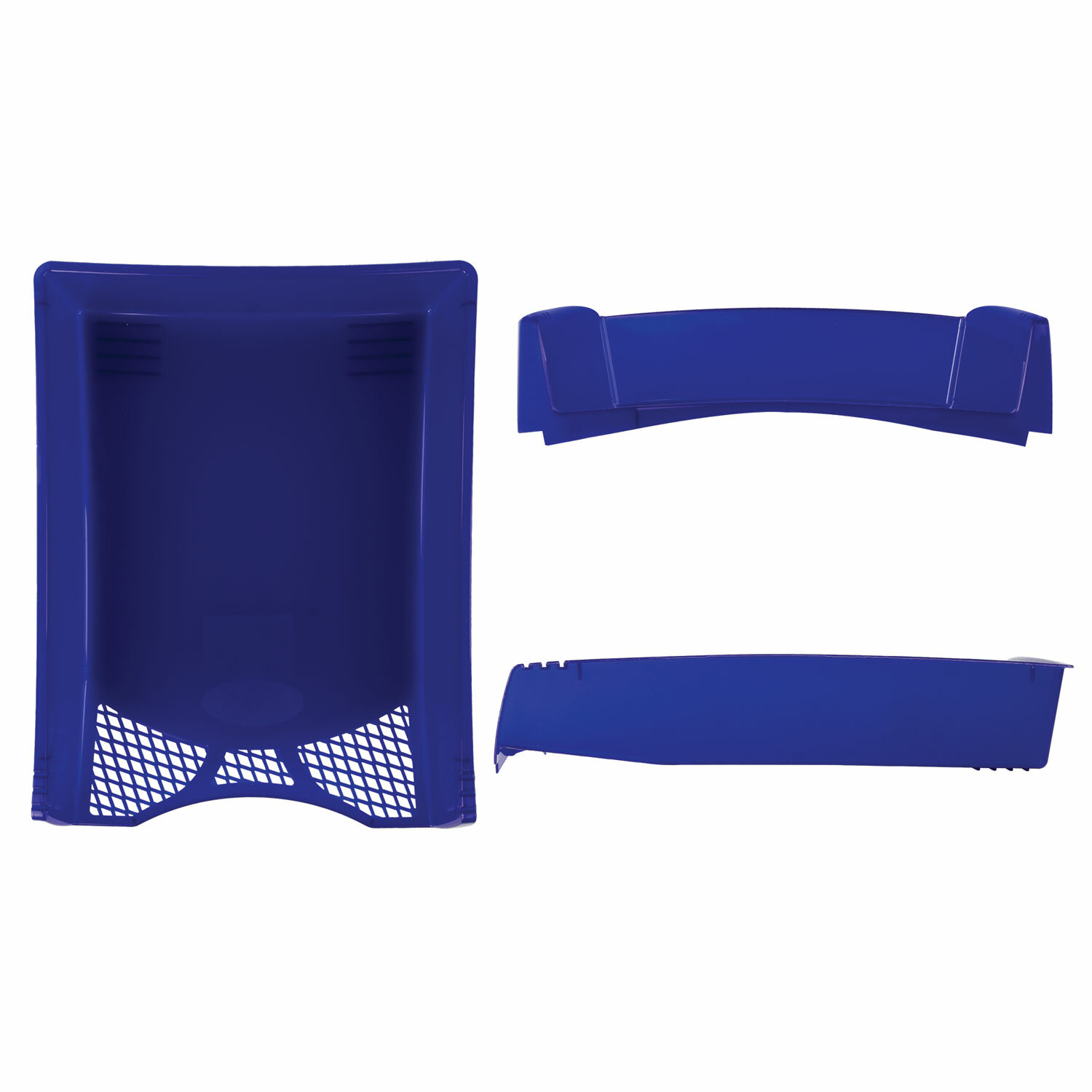 1 отделение. Приподнятая фронтальная часть лотка облегчает изъятие документов из накопителя. Изготовлен из пластика синего цвета. Размер (ВxШхГ) - 60x260х330 мм. Удобная транспортировка и хранение за счет укладки лотков один в другой.