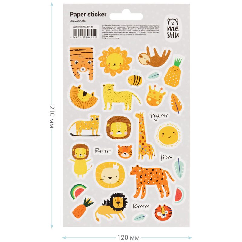 Бумажные наклейки подойдут также для украшения канцтоваров, открыток, поделок, телефонов, ноутбуков, предметов интерьера. Яркие современные дизайны от MESHU сделают творческий процесс увлекательным и подарят отличное настроение. Наклейки упакованы в пакет с европодвесом.