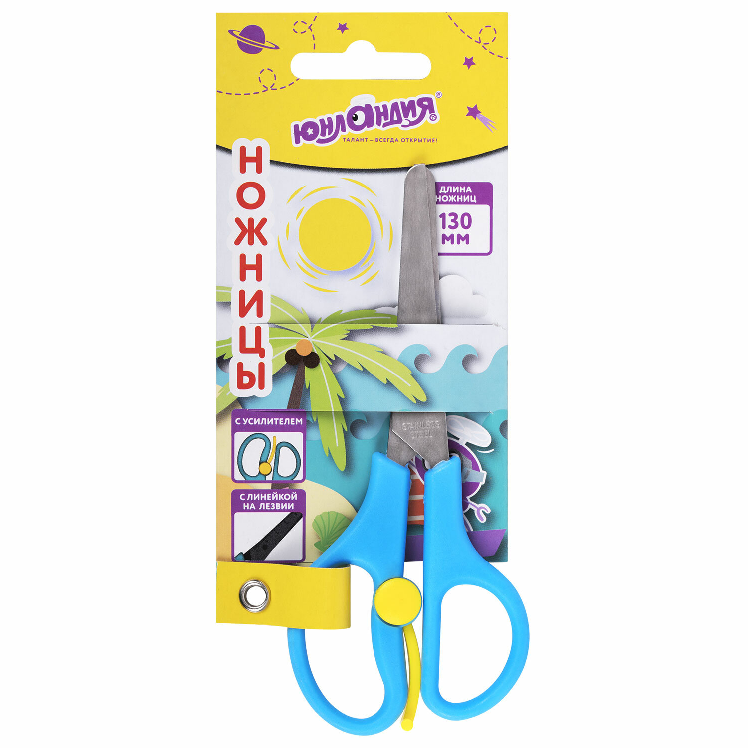 Ножницы ЮНЛАНДИЯ с эргономичными ручками и усилителем разработаны специально для детского творчества.