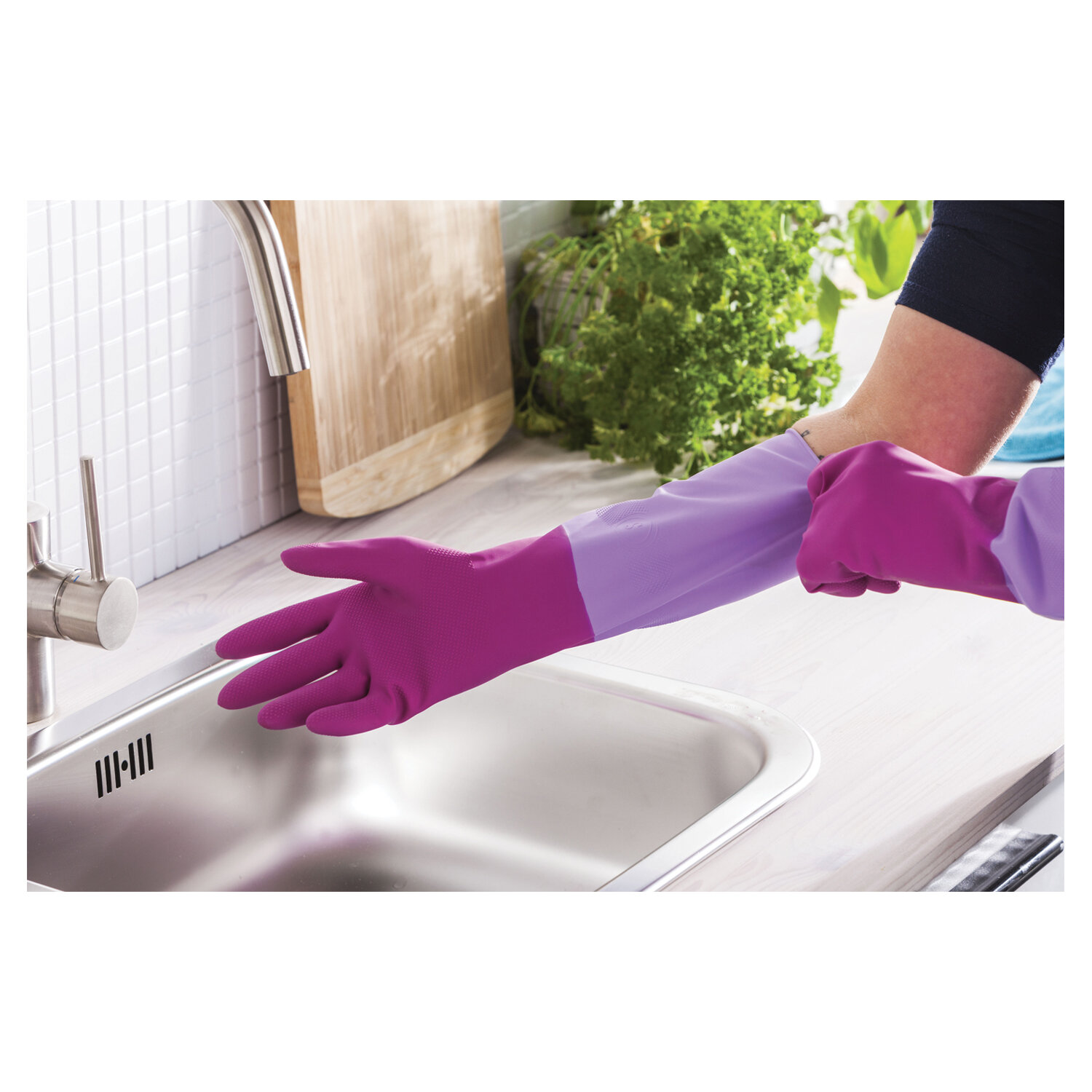 Текстура на пальцах и ладони облегчает захват и предотвращает выскальзывание предметов из рук. Удлиненная манжета защищает руки от контакта с водой. Изготовлены на 100% из натурального латекса.