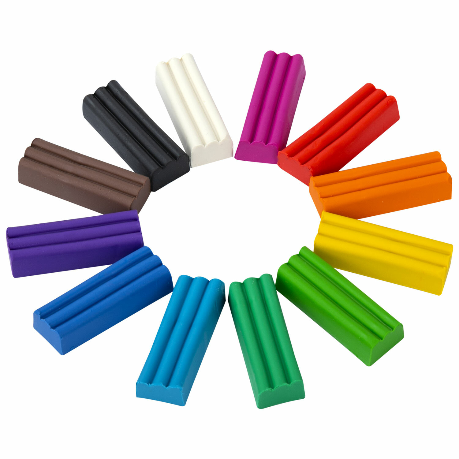 В составе набора 12 ярких цветов: белый, черный, синий, красный, зеленый, желтый, светло-зеленый, коричневый, голубой, оранжевый, лиловый, фиолетовый. Масса набора - 120 г.
