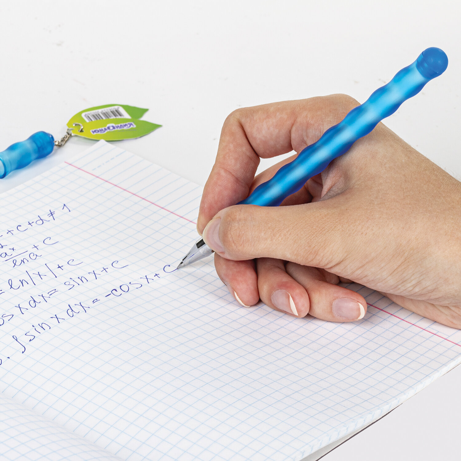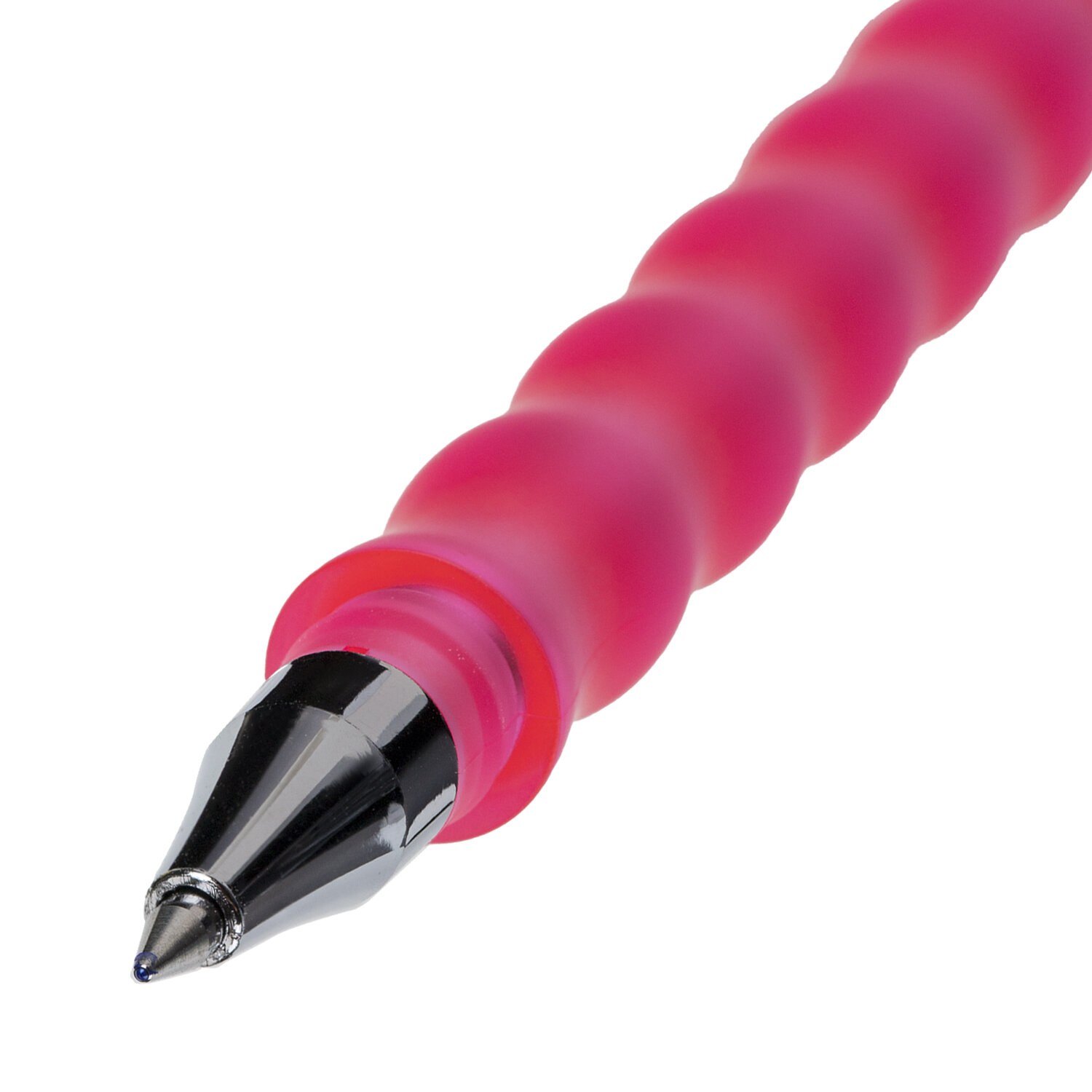 Ручка имеет прорезиненный корпус необычной формы в цвете ассорти ярких оттенков. Наконечник - стандартный. Длина сменного стержня составляет 130 мм. Диаметр пишущего узла, равный 0,5 мм, создает линию письма, равную 0,35 мм. Стирание ластиком, расположенным внизу ручки. Цвет чернил - синий.