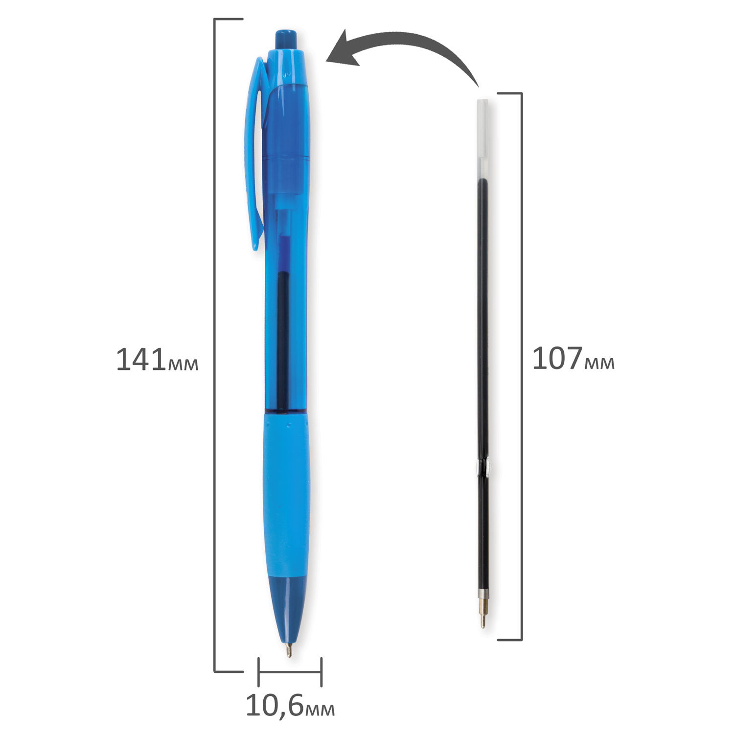 Цвет чернил: синий Серия: Fruity Количество в наборе: 1 шт. Толщина линии письма: 0.35 мм Диаметр пишущего узла: 0.7 мм Форма наконечника: игольчатый Длина сменного стержня: 107 мм Чернила на масляной основе: да Эргономичная зона захвата: резиновый держатель Цвет корпуса: ассорти Форма корпуса: круглая Упаковка: картонная коробка
