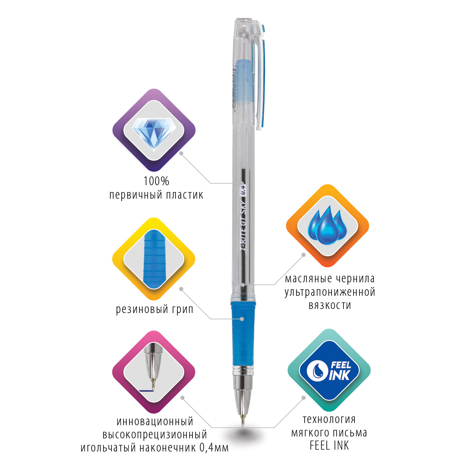 Цвет чернил: синий Количество в наборе: 1 шт. Серия: i-RITE GT Длина сменного стержня: 140 мм Толщина линии письма: 0.2 мм Диаметр пишущего узла: 0.4 мм Чернила на масляной основе: да Форма наконечника: игольчатый Эргономичная зона захвата: резиновый держатель Цвет корпуса: прозрачный Форма корпуса: шестигранная Упаковка: картонная коробка