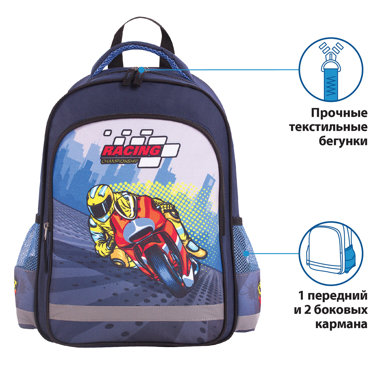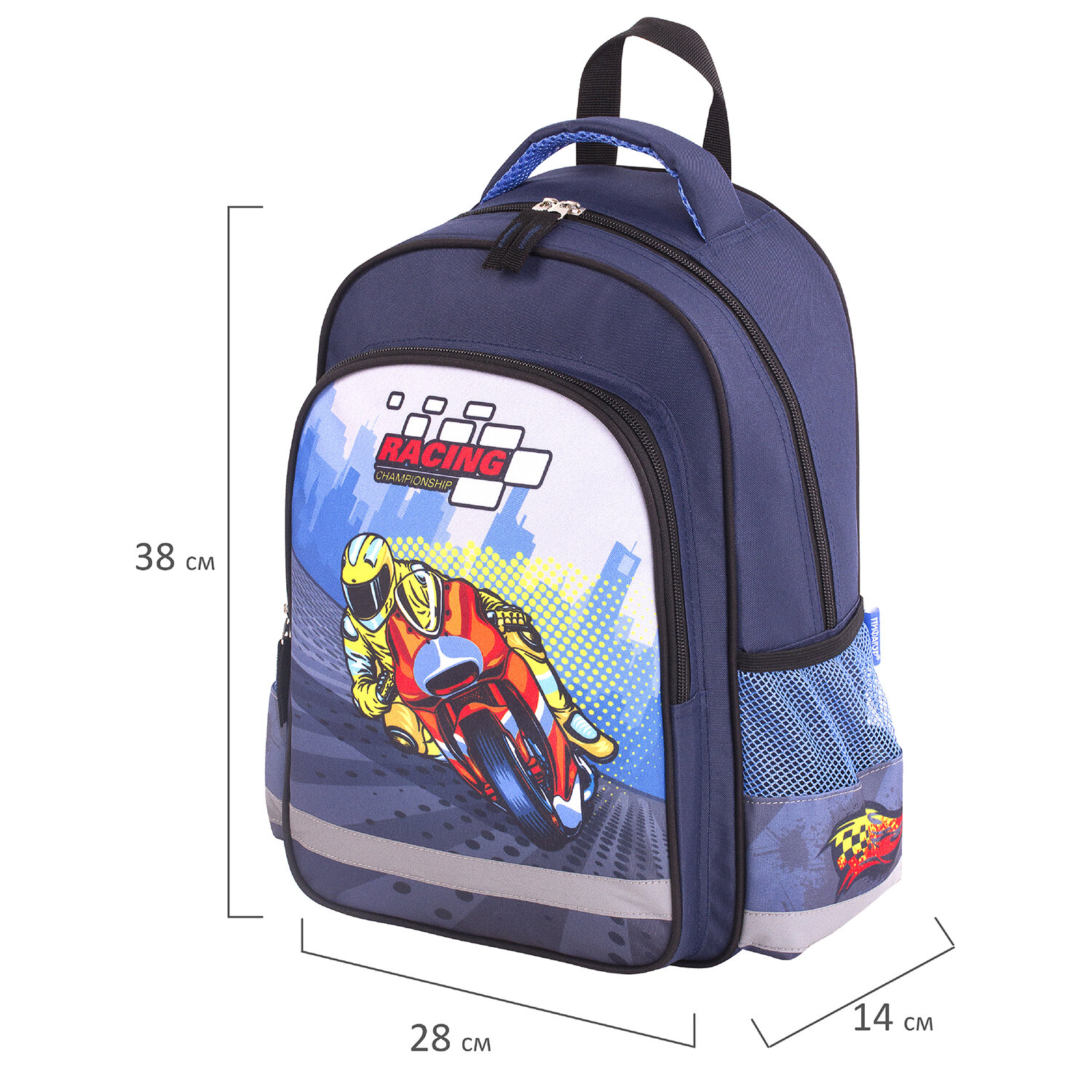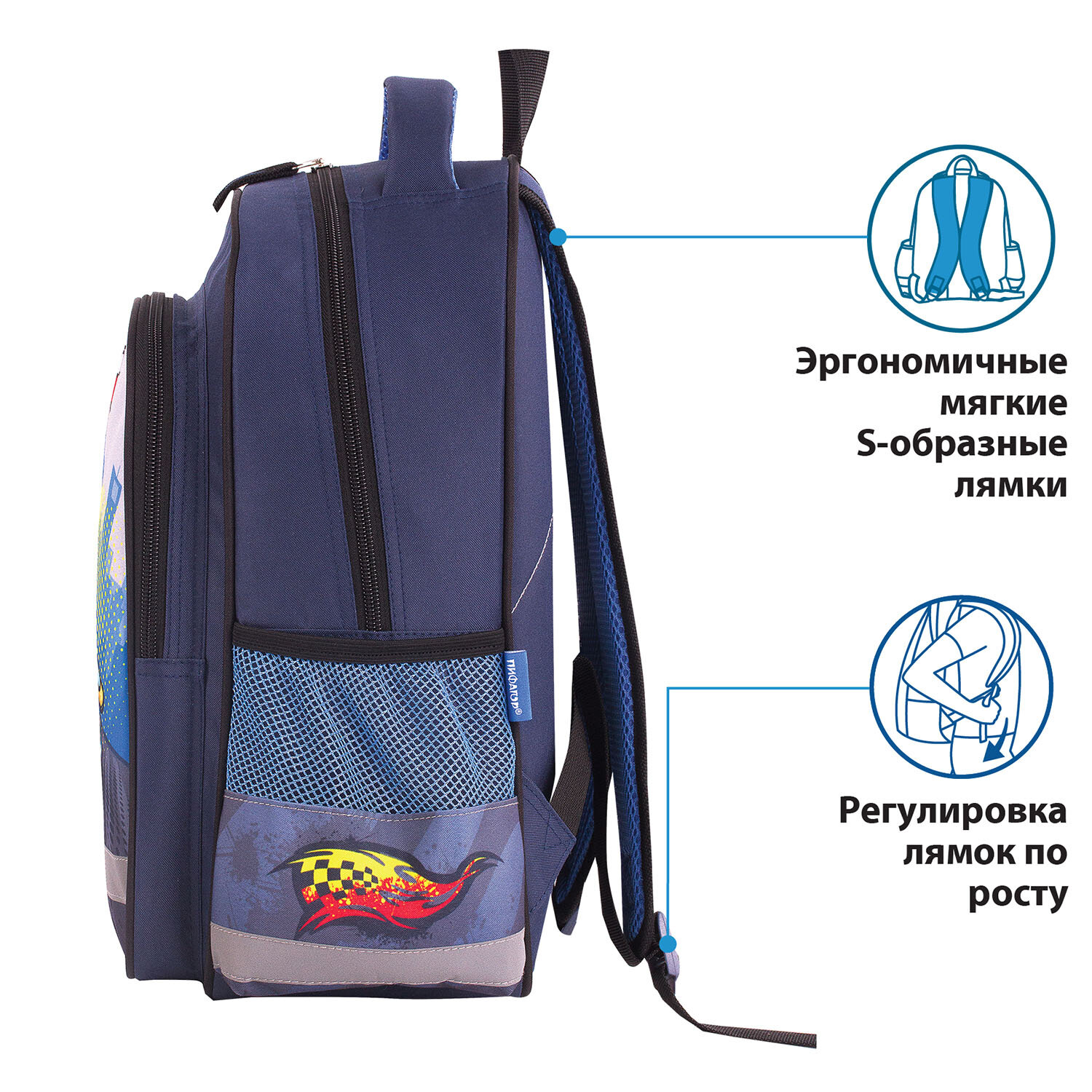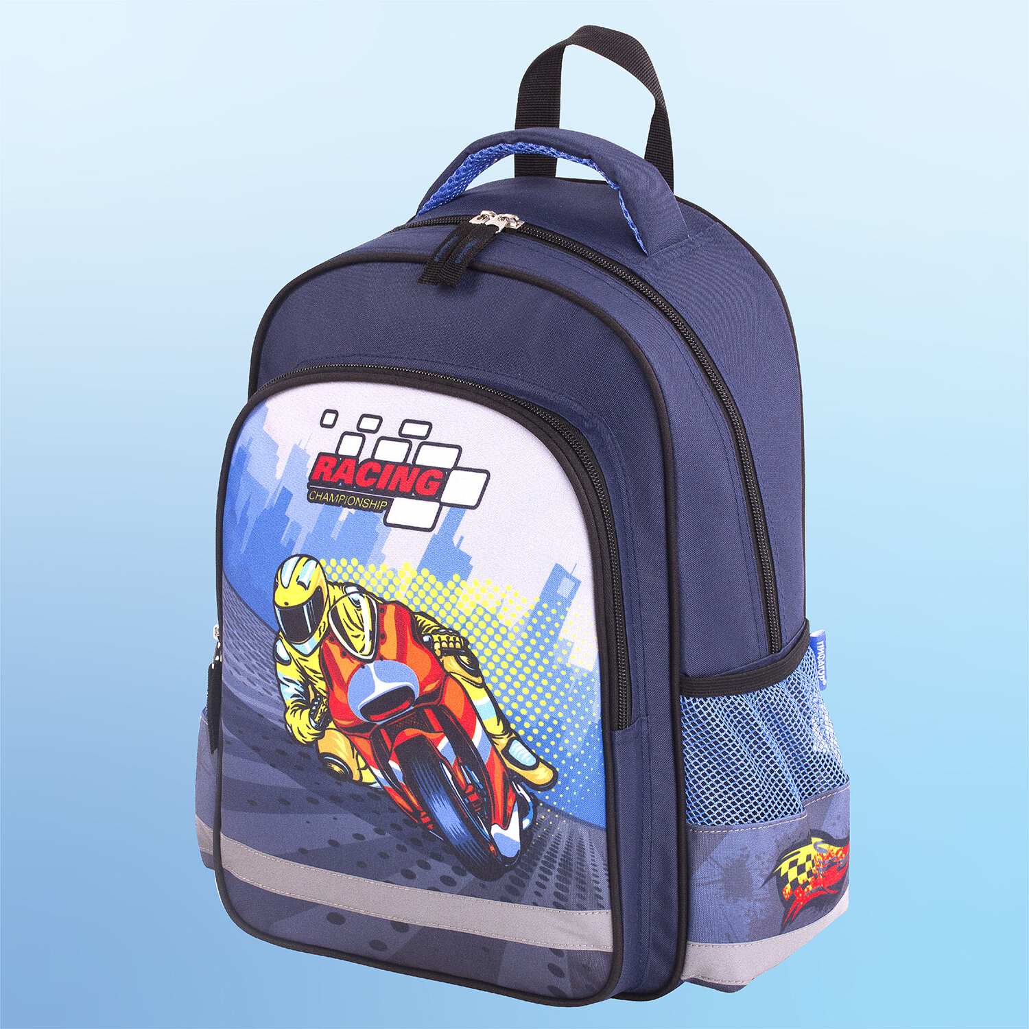 Рюкзак имеет 1 вместительное отделение на молнии, 1 передний и 2 боковых кармана. Оптимальный размер рюкзака позволяет вместить все необходимые школьные принадлежности. Мягкие широкие регулируемые лямки способствуют оптимальному распределению веса.