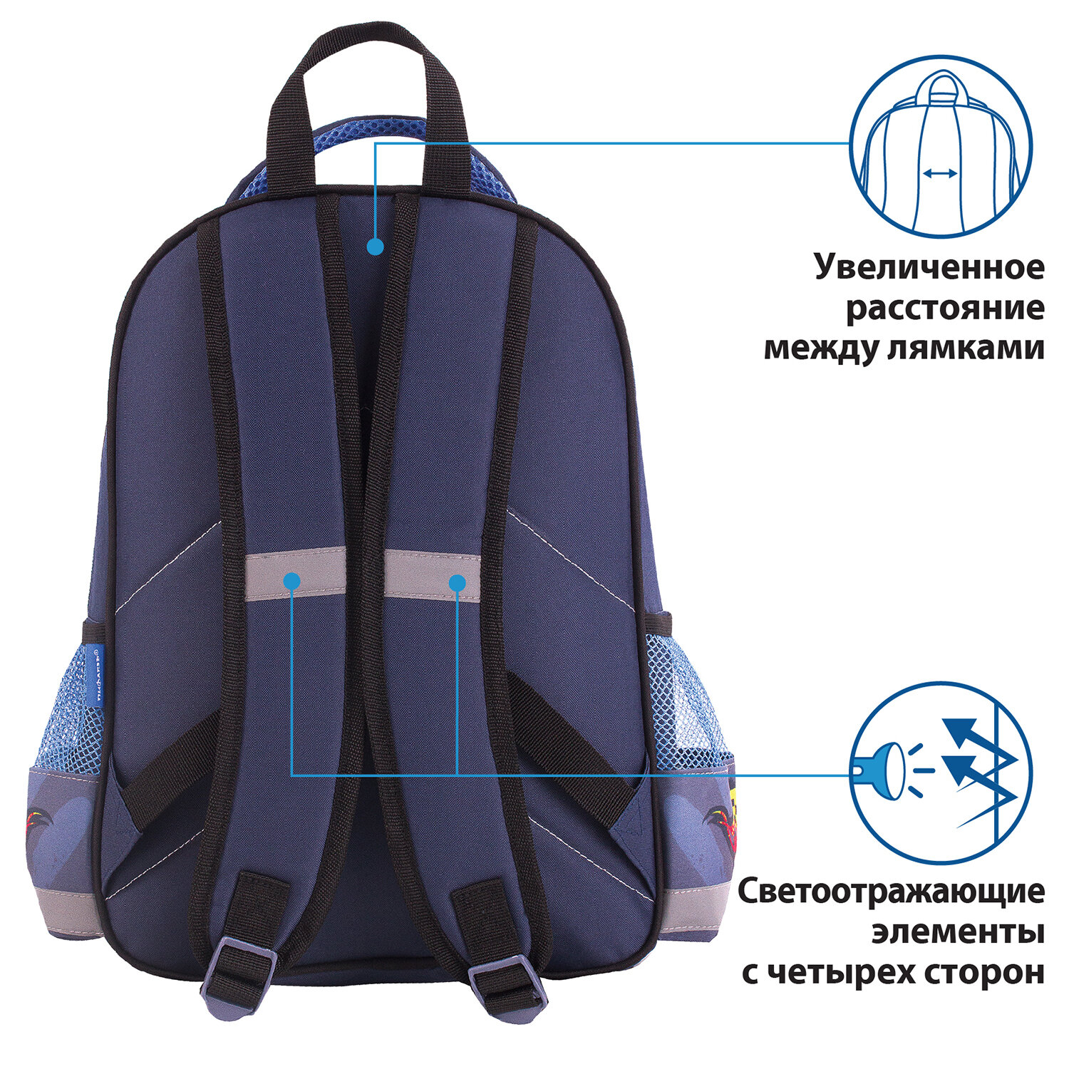 У рюкзака есть удобная ручка из ткани для переноски и петелька для подвешивания на крючок парты. Яркая и качественная печать, насыщенный цвет рисунков достигается за счет использования современных технологий печати на ткани. Светоотражающие элементы со всех сторон ранца обеспечивают безопасность в темное время суток.