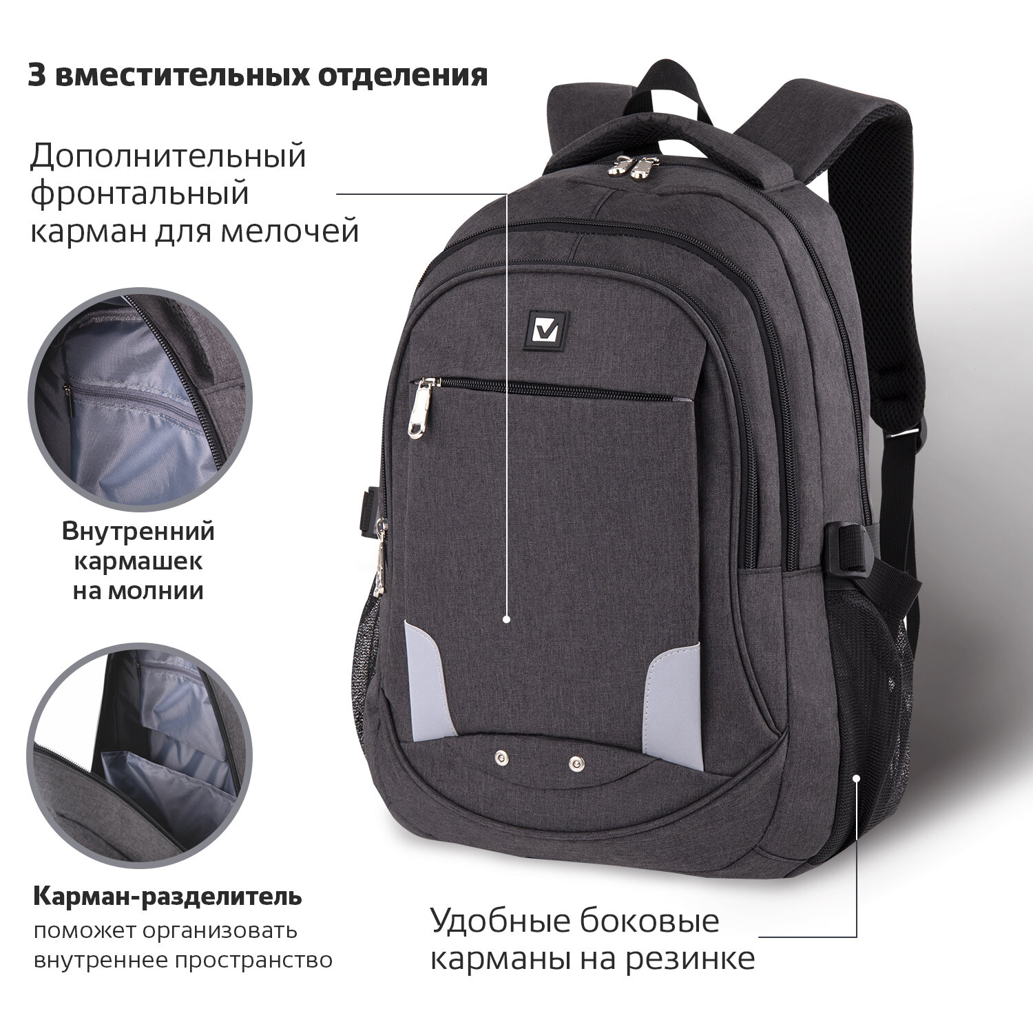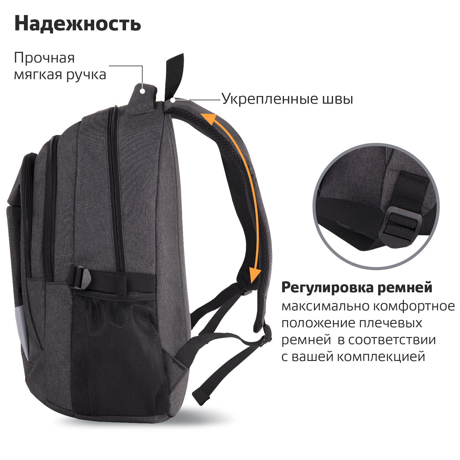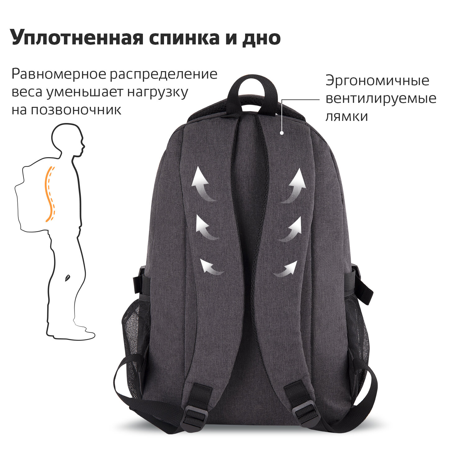 Удобный и надежный рюкзак BRAUBERG имеет оптимальную функциональную организацию - три вместительных отделения, боковые карманы и наружный карман для быстрого доступа к необходимым вещам.