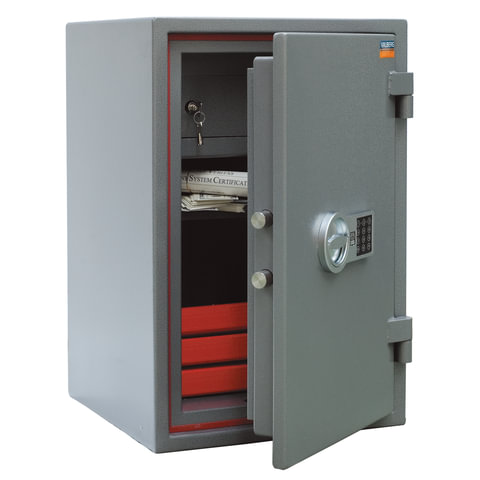 Размер внешний (ВхШхГ) - 670х440х440 мм. Размер внутренний (ВхШхГ) - 420х330х290 мм. Класс взломостойкости - 1 по ГОСТ Р 50862-2017: класс 1 (ГОСТ Р). Класс огнестойкости - 60Б по ГОСТ Р 57384-2017: класс 60Б (ГОСТ Р). Система блокировки ригельного механизма при выбивании замка. Одна съемная полка. Электронный замок с защитой от высверливания и выбивания. 3-х сторонняя ригельная система запирания с никелированными ригелями. Толщина двери - 92 мм; толщина боковых стенок - 56 мм. Заливка двери и корпуса - огнестойкий бетон. Наличие анкерного крепления к полу.Анкерный болт в комплект не входит. Цвет - графит структурированный. Вес - 99 кг.