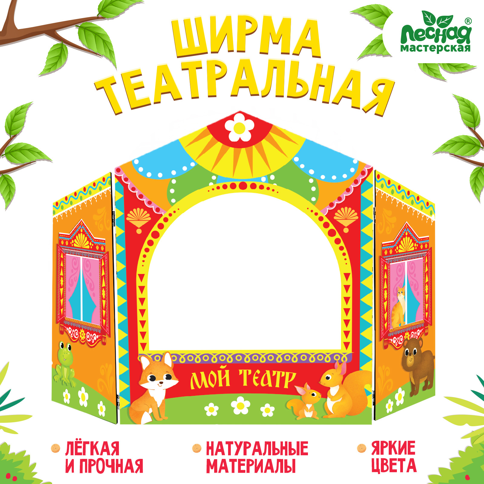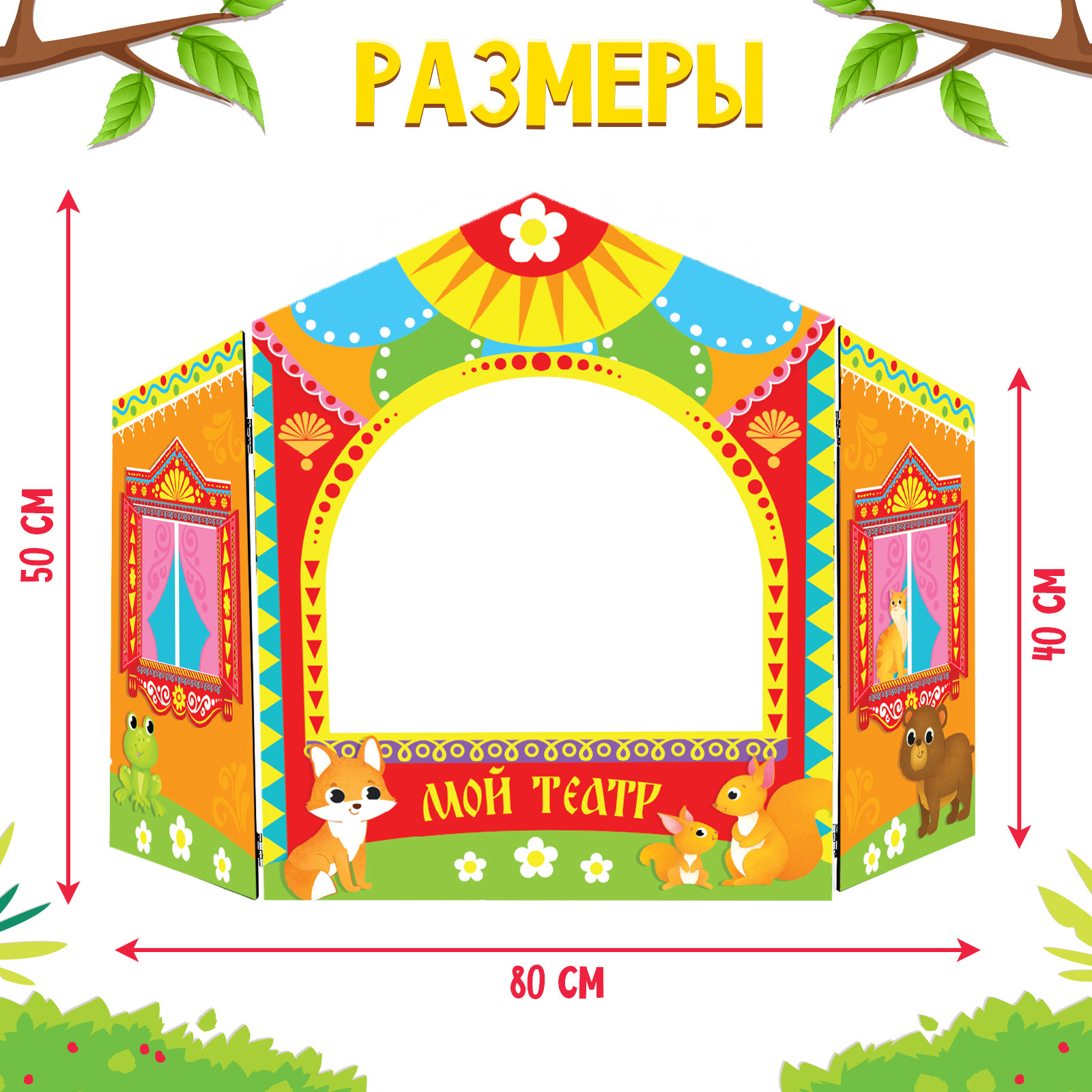 Размер ширмы в установленном виде: 80 × 50 см.