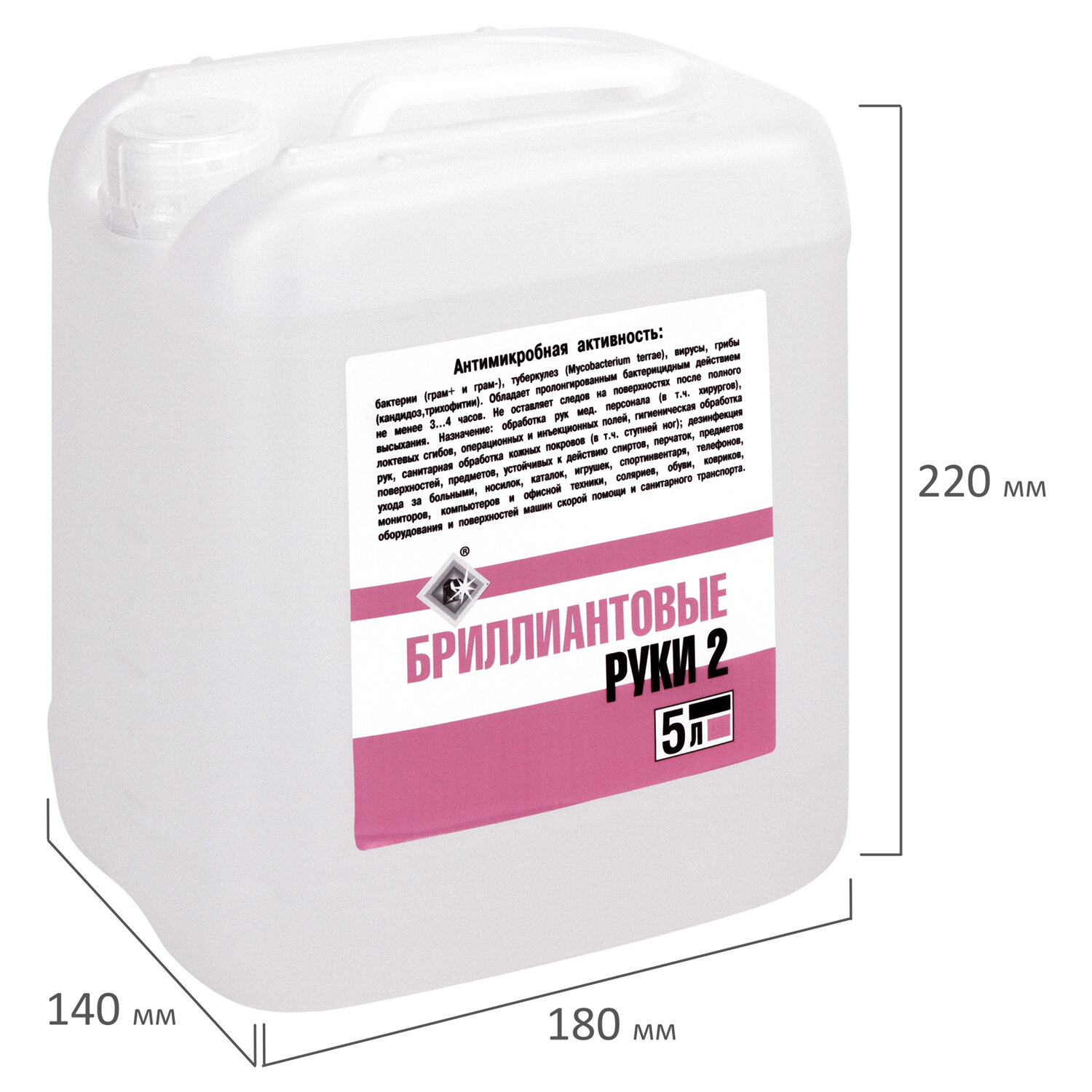 Форма выпуска: жидкость Режимы дезинфекции: дезинфекция кожных покровов, дезинфекция поверхностей Область применения: ветеринарные и животноводческие объекты, детские учреждения (детсады, школы и т.п.), коммунальные объекты (бани, бассейны, гостиницы, общественные туалеты и т.п.), курортные, спортивные и культурно-оздоровительные комплексы, лаборатории, ЛПУ, парикмахерские, косметические салоны и т.п., предприятия общественного питания, предприятия перерабатывающей промышленности, учреждения соцобеспечения Объем: 5 л Тип активности: бактерии, вирусы, патогенные грибы Содержит: спирт, ЧАС Соответствует требованиям ГОСТа: ГОСТ 12.1.007-76 п.1.2, 1.3, ГОСТ Р 56990-2016, ГОСТ Р 58151.1-2018 Подходит для использования в детских учреждениях: да Пролонгированный антимикробный эффект: да Наличие СГР на дез. средство (кожный антисептик): да Дозатор: отсутствует Упаковка: канистра