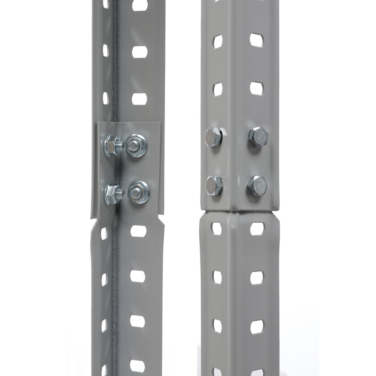 Стойка имеет разборную конструкцию, благодаря чему стеллаж поставляется в компактной упаковке. Максимальная нагрузка на полку при этом достигает 100 кг, на стеллаж - до 500 кг. Стойки «Standart» с усиленным угловым профилем сложного сечения 30×30 мм и толщиной металла 1,2 мм. Полки имеют толщину основания 0,5 мм, усилены центральным ребром жесткости. Высота бокового и торцевого ребра полки – 33 мм, толщина - 1 мм. Для повышения жесткости всей конструкции верхняя и нижняя полка усилена дополнительными Г-образными уголками. Шаг установки полок - 25 мм. Опоры пластиковые, нерегулируемые.
