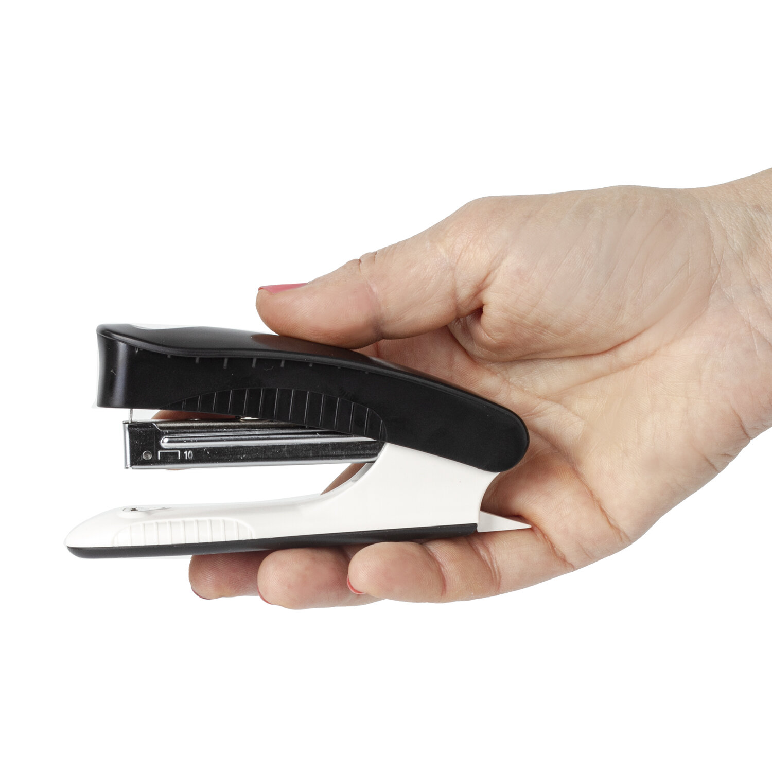 Способен скрепить до 20 листов. Стандартный размер скоб №10. Глубина закладки бумаги - 58 мм. Виды сшивания: закрытый, прямой. Данная модель может выступать в качестве антистеплера, позволяющего разжать закрепленные скобы более качественно, не нанося повреждений ни материалу, ни кончикам пальцев. За счет компактных размеров не займет на рабочем столе много места. Имеет классический дизайн.