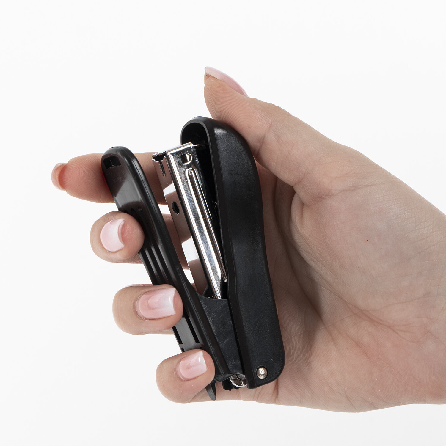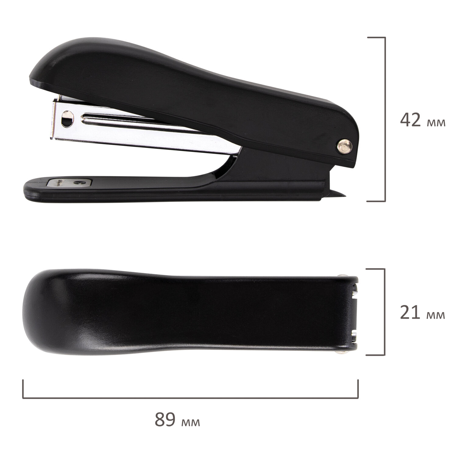 Степлер STAFF "Basic" с антистеплером в черном эргономичном пластиковом корпусе с металлическим механизмом cпособен скрепить до 12 листов. Подходящий размер скоб № 10. Виды сшивания: закрытый. Глубина закладки бумаги - 49 мм. Габариты: высота - 42 мм, ширина - 21 мм, длина - 89 мм. Благодаря компактным размерам удобен в использовании и занимает мало места на рабочем столе, а классический дизайн делает степлер подходящим к любому интерьеру. Продается в картонной упаковке.