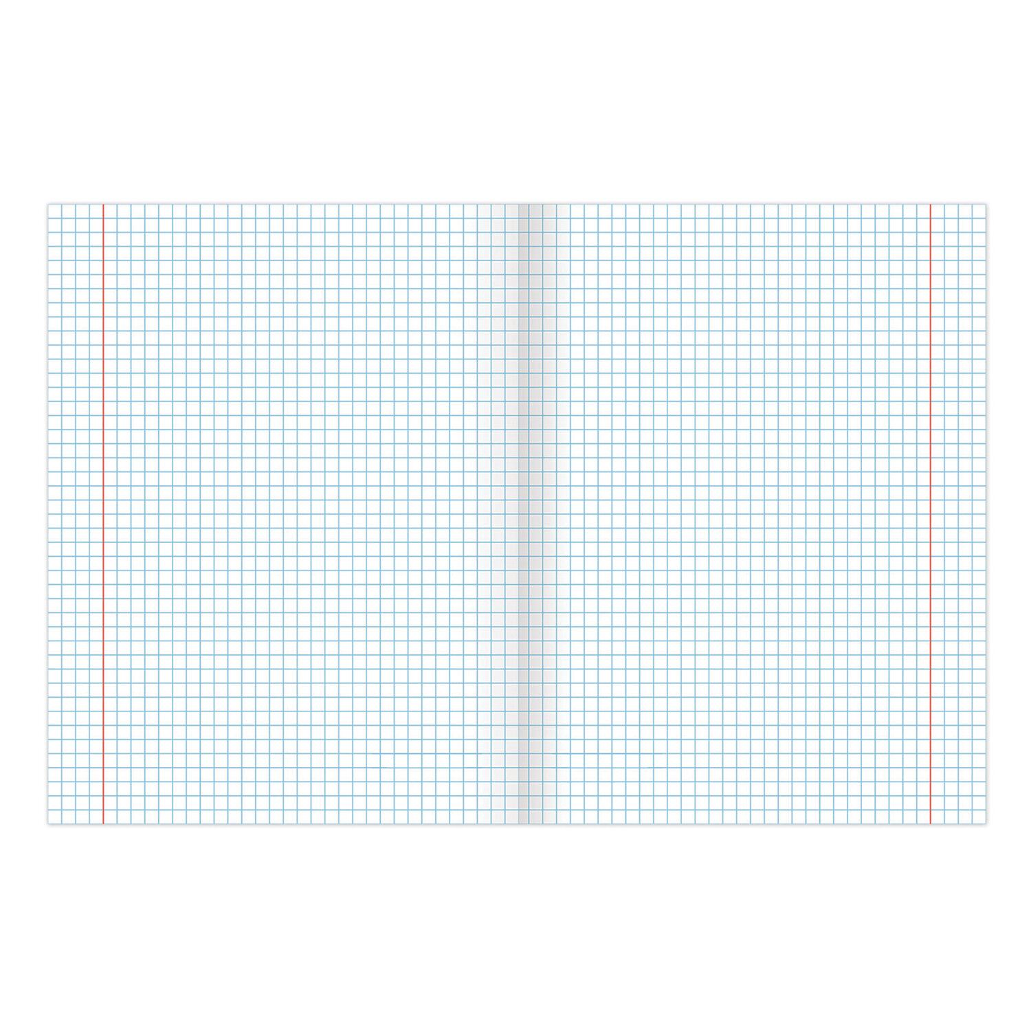 Внутренний блок содержит 48 листов офсетной бумаги плотностью 65 г/м2. Обложка изготовлена из мелованного картона. Линовка - клетка с полями. Скрепка надежно скрепляет листы между собой. Белизна - 100%. Формат А5.