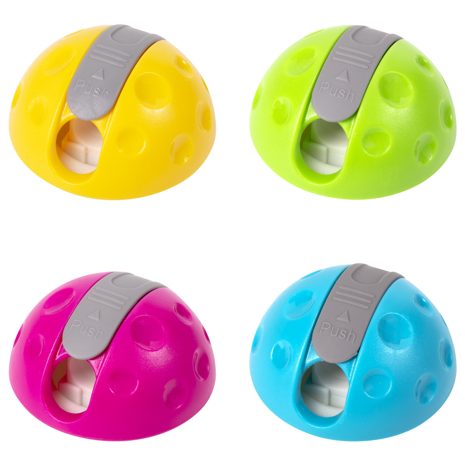 Эргономичный корпус выполнен из пластика ярких цветов ассорти. Необычная форма точилки позволяет удобно держать ее в руке. Острое стальное лезвие обеспечивает быструю и легкую заточку. Карандаш затачивается аккуратно, а опилки остаются в специальном контейнере. Размер - 42х42х28,5 мм.