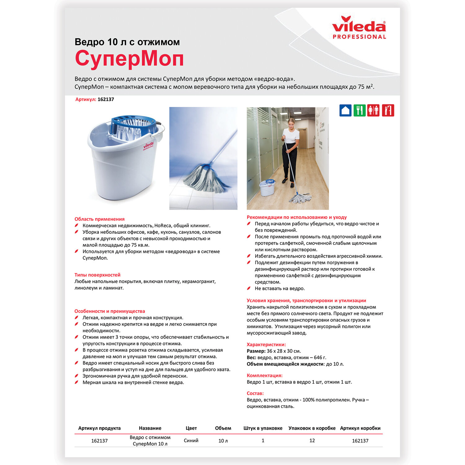 Объем: 10 л Форма: круглая Материал: высокачественный полипропилен С системой отжима: да Высота: 28 см Ширина: 28 см Глубина: 38 см Цвет: серый