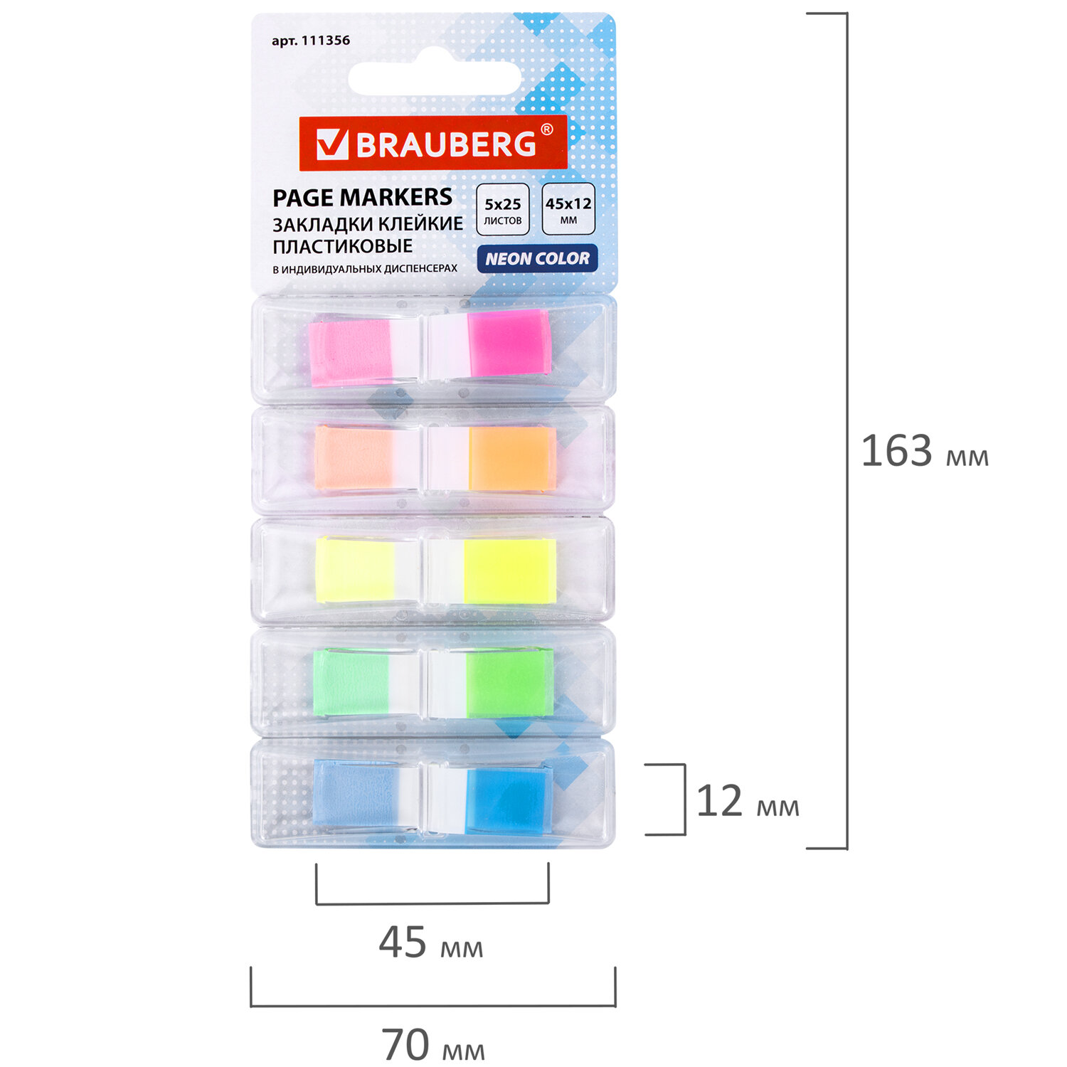 Ширина: 12 мм Длина: 45 мм Количество цветов: 5 Количество закладок в блоке: 25 шт Общее количество закладок: 125 шт Хранение закладок: диспенсер Неоновые цвета: да Материал: пластик Клейкость: 22 Н/м Форма закладок: прямоугольные Цвет: ассорти Упаковка: блистер с европодвесом