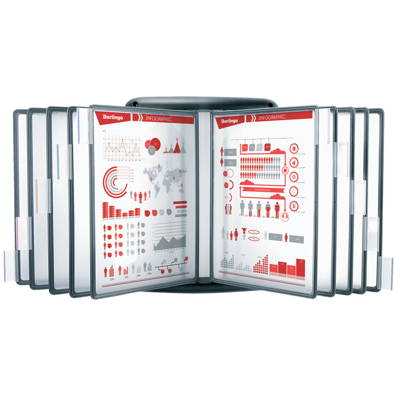 Демосистема настольная на 30 панелей, с 30 черными панелями А4, вращающаяся, STAFF, 238333