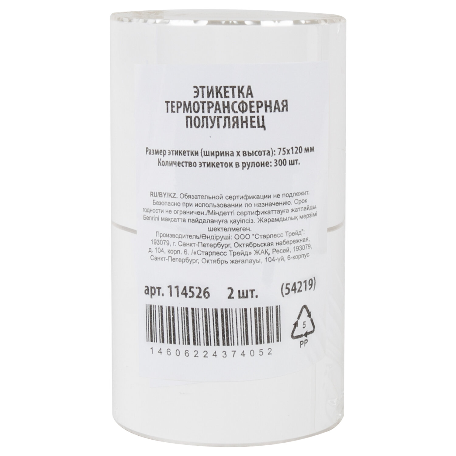 Размер этикетки (ШхВ): 75х120 мм