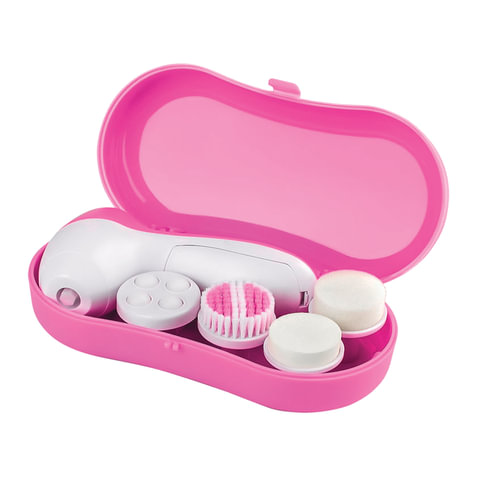 Количество режимов - 2. Количество насадок - 4. Материал корпуса - пластик. В комплекте - кейс. Питание - 2 батарейки АА (в комплект не входят). Цвет - розовый. Вес - 190 г.