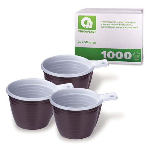 Тип товара: чашка Объем: 180 мл Материал: полипропилен (PP) Количество в упаковке: 1000 шт Диаметр: 77 мм Назначение: для горячих напитков, для холодных напитков Цвет: бело-коричневый