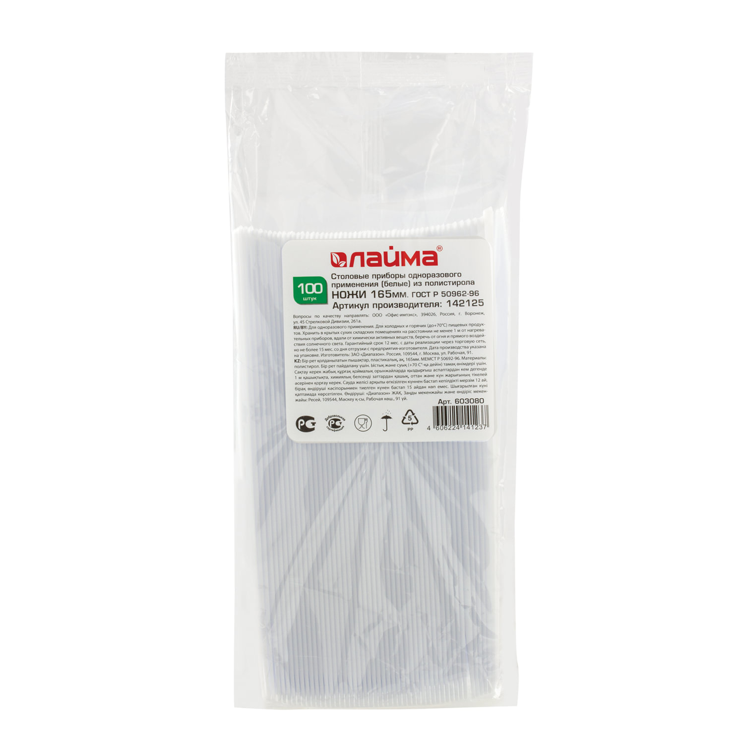 Длина: 165 мм Количество в упаковке: 100 шт. Соответствует требованиям ГОСТа: ГОСТ Р 50962-96 Материал: полистирол Цвет: белый Компакт-упаковка: да