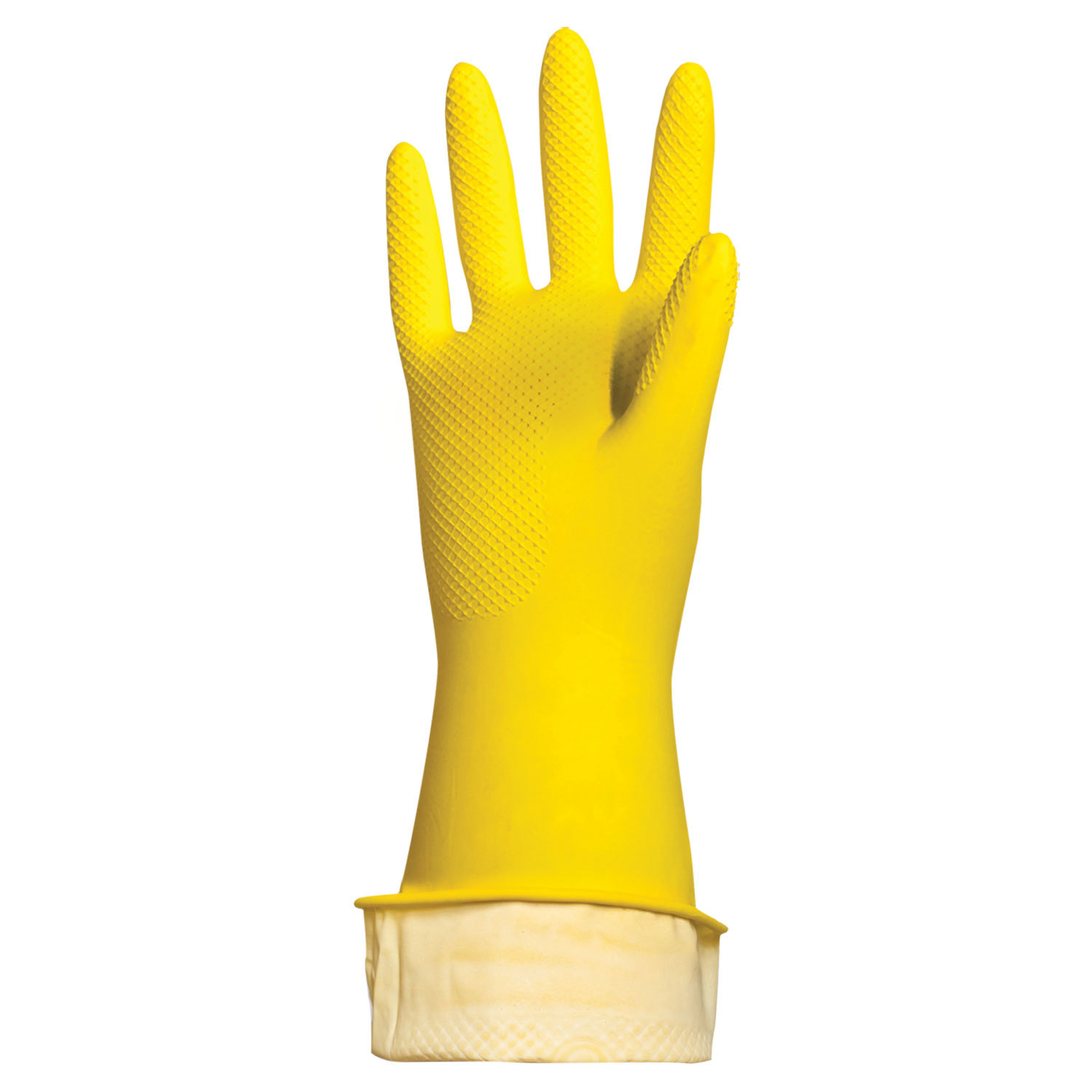 Материал основы: латекс Размер: M Серия: Эконом Количество пар в упаковке: 1 Внутреннее напыление: хлопчатобумажное Рельефная поверхность: да Тип манжеты: закатанный край Цвет: желтый Упаковка: европодвес