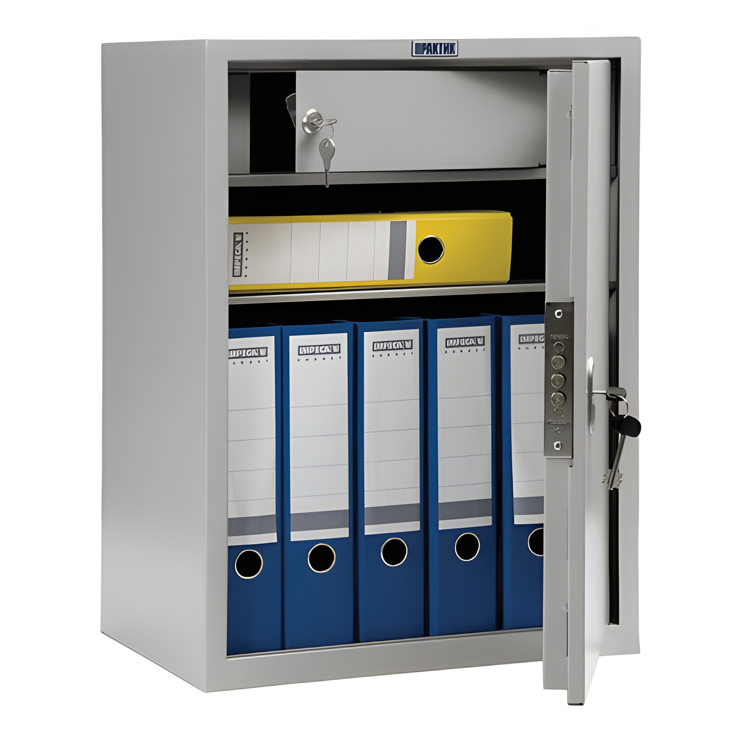 Кол-во независимых отделений: 1 Кол-во полок: 1 Возможность перестановки полок: да Вместимость: 7 папок толщиной 75 мм Конструкция: сварная Высота: 630 мм Ширина: 460 мм Глубина: 340 мм Внутренняя высота: 342 мм Внутренняя ширина: 458 мм Внутренняя глубина: 300 мм Тип замка: ключевой сейфового типа ПРАКТИК (Россия) Толщина стали корпуса: 1.2 мм Дополнительное отделение, закрывающееся на ключ: да Высота дополнительного отделения: 147 мм Ширина дополнительного отделения: 457 мм Глубина дополнительного отделения: 300 мм Соответствует требованиям ГОСТа: ГОСТ 16371-2014 Цвет: серый Тип покрытия корпуса: полимерное порошковое Тип поставки: в собранном виде, сварная конструкция Вес: 17 кг