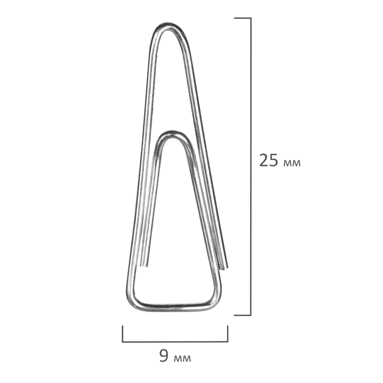Скрепки изготовлены из стали, имеют треугольную форму и цинковое покрытие. Длина скрепки составляет 25 мм. Не окисляются и не повреждают документы. 100 штук в картонной коробке.