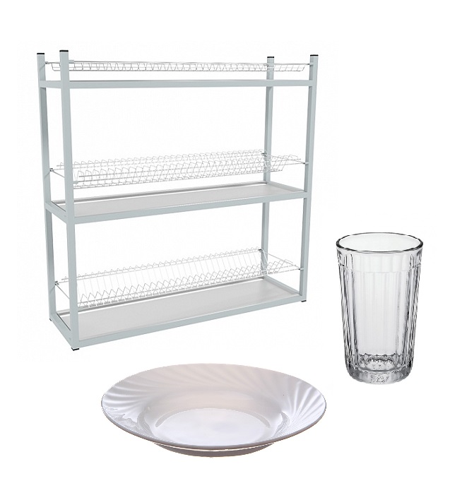 Стеллаж для тарелок и стаканов 3-х полочный ЭКОНОМ СКТСК-21КЭ (сетки хром., каркас окраш.), 895х270х